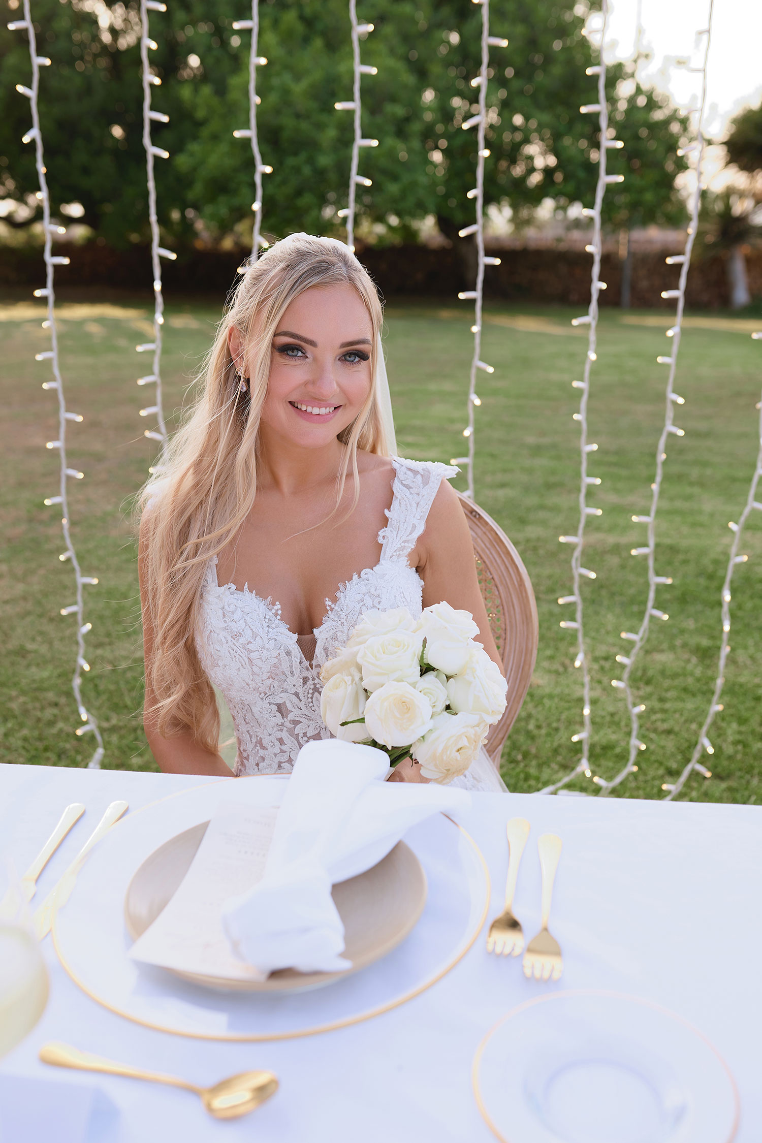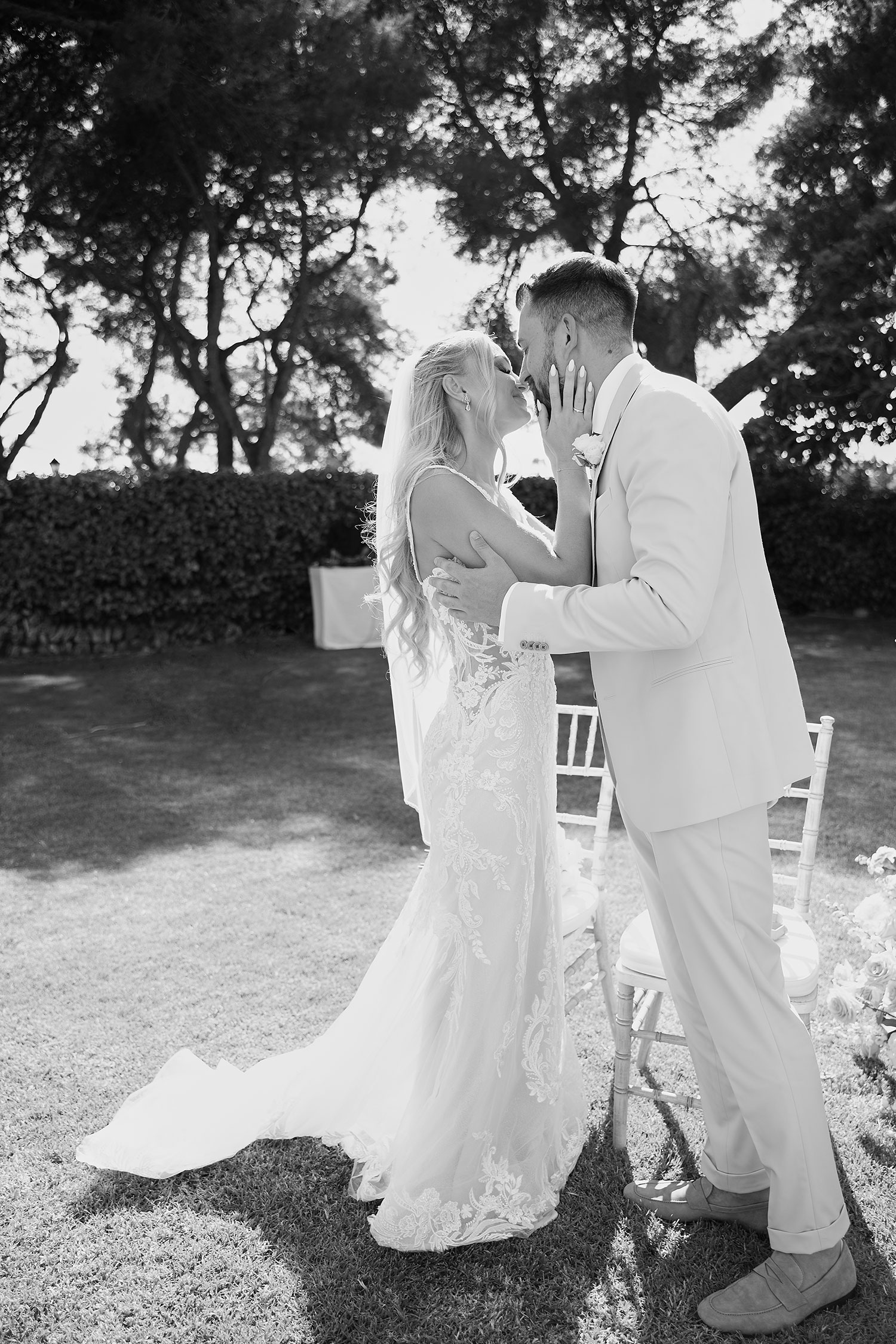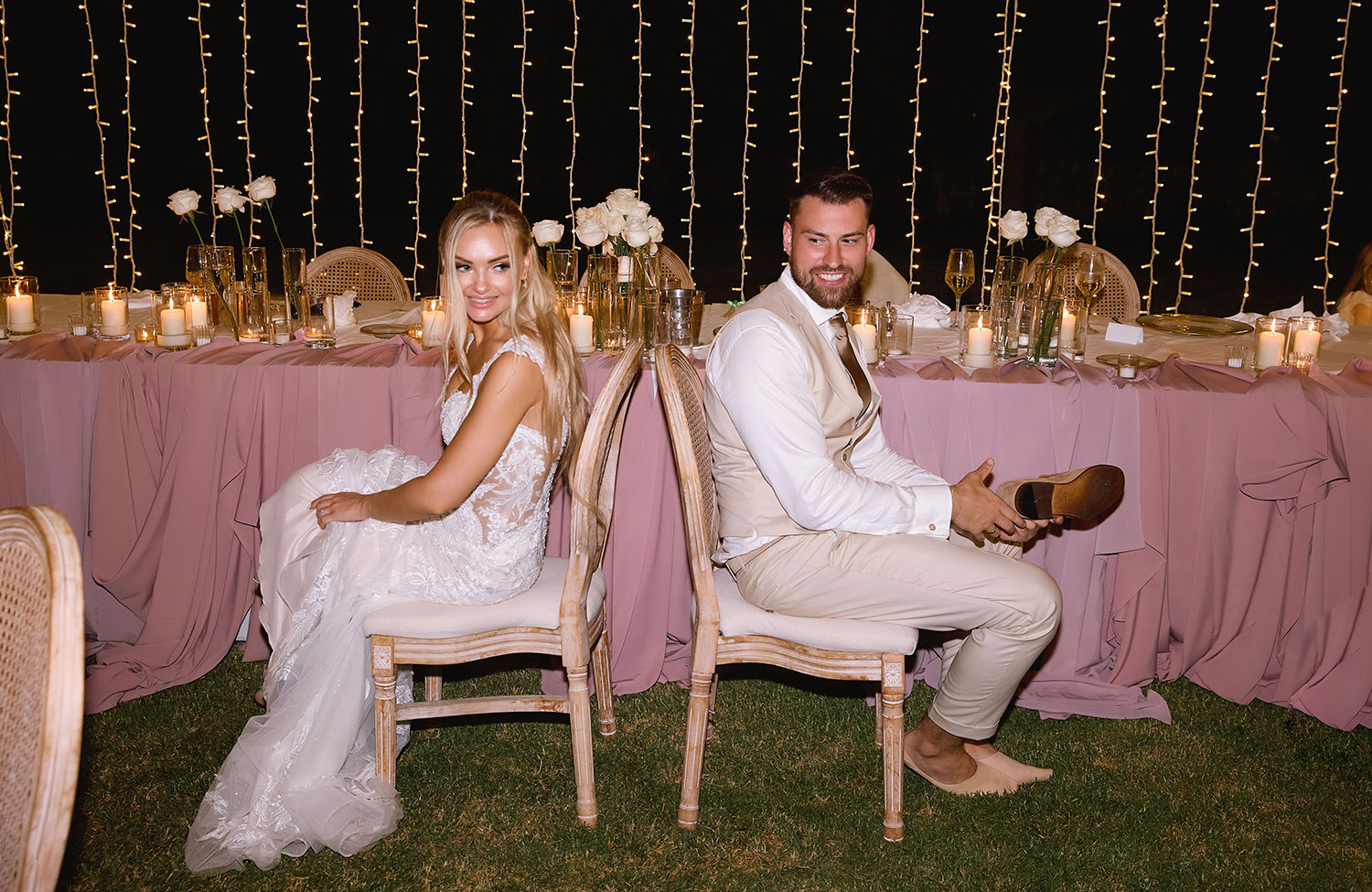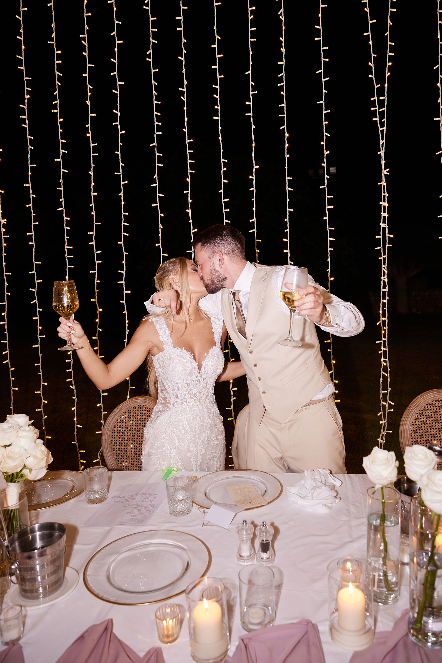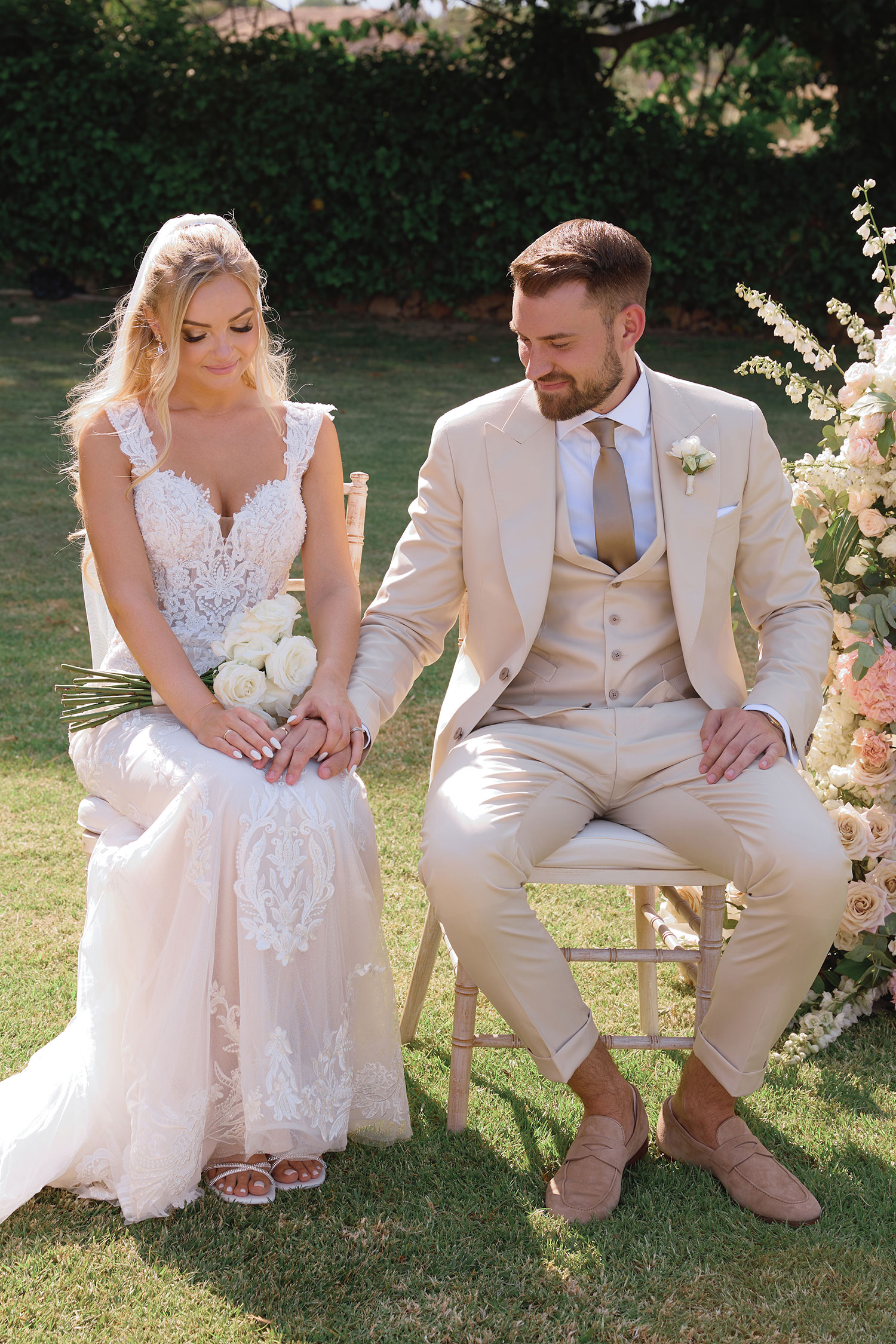 Boda de lujo en Santa Eulalia, donde una hermosa pareja intercambió votos bajo una piedra histórica y la luz dorada de las Islas Baleares: un día envuelto en elegancia, romance y encanto atemporal.
