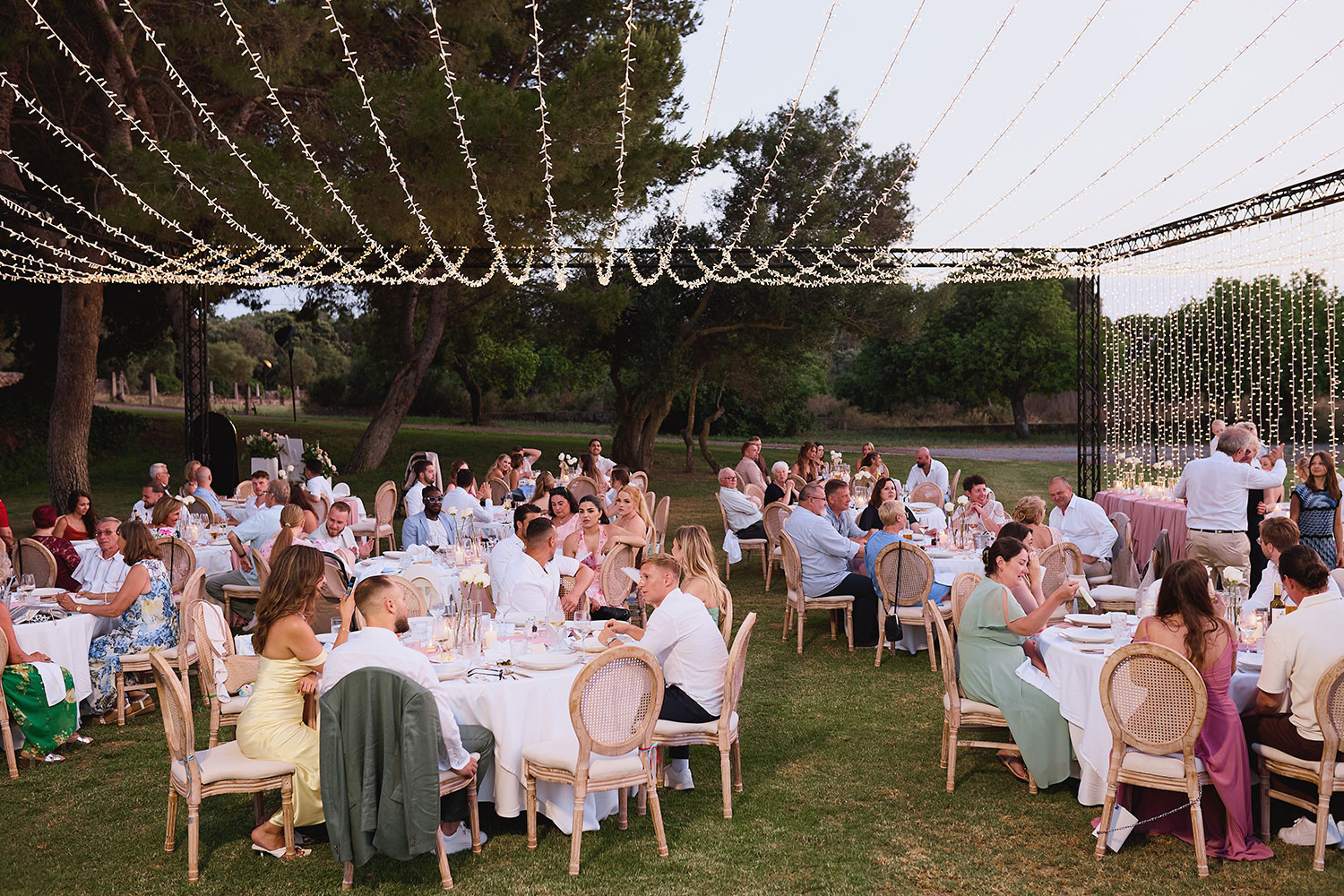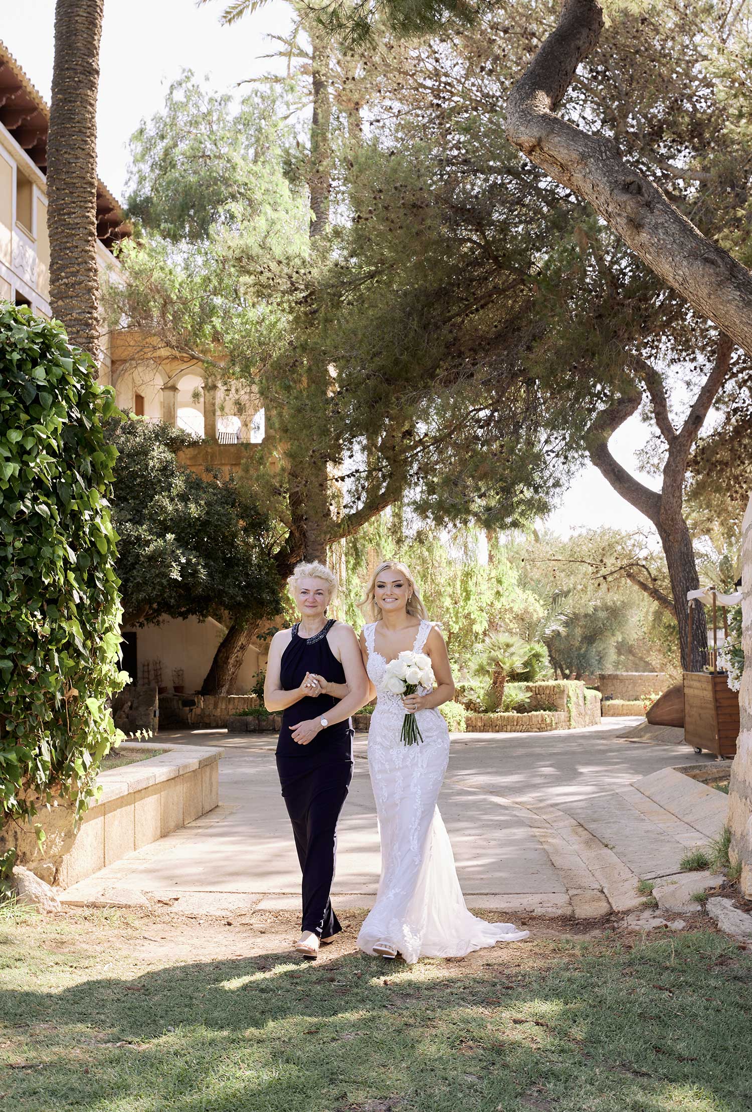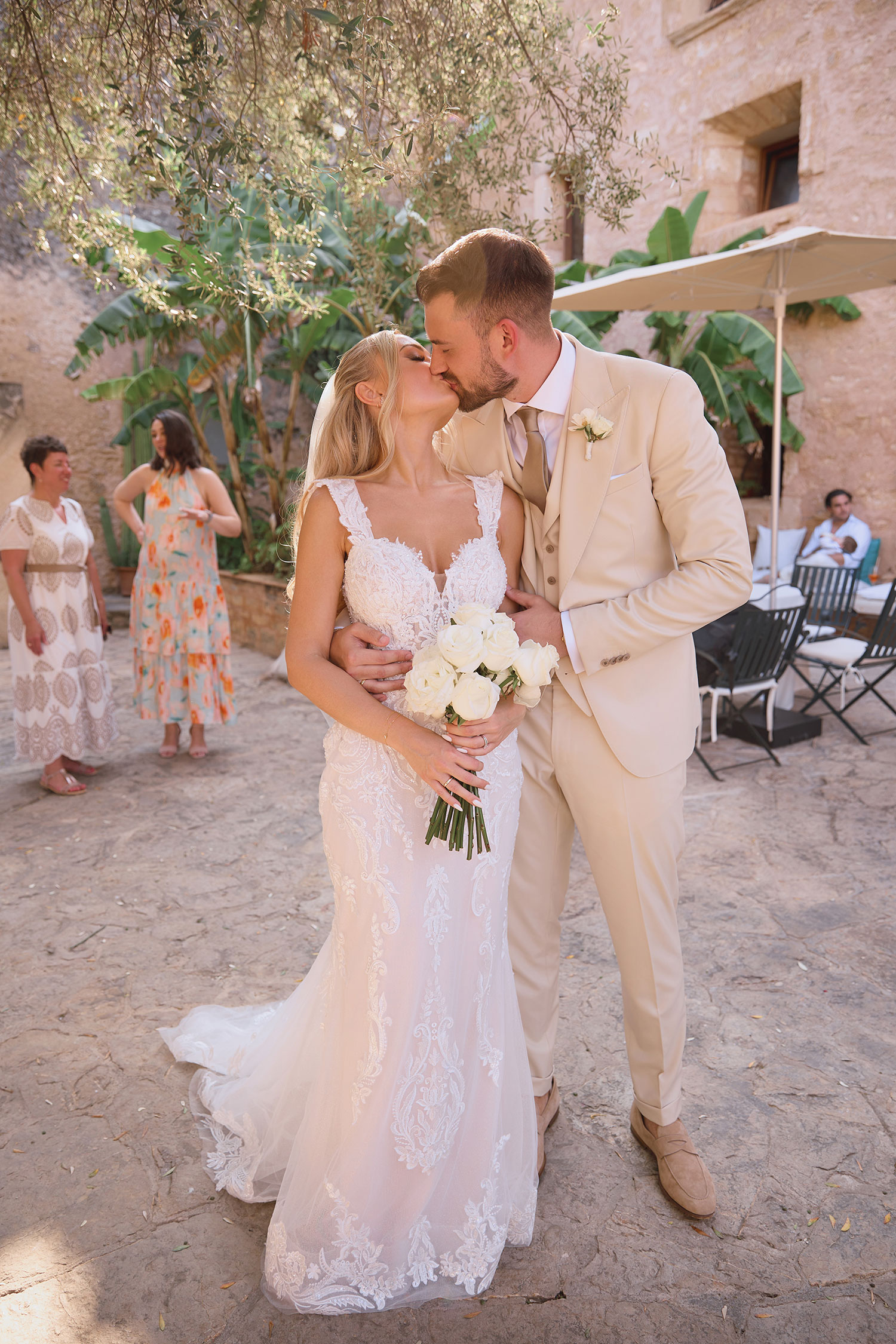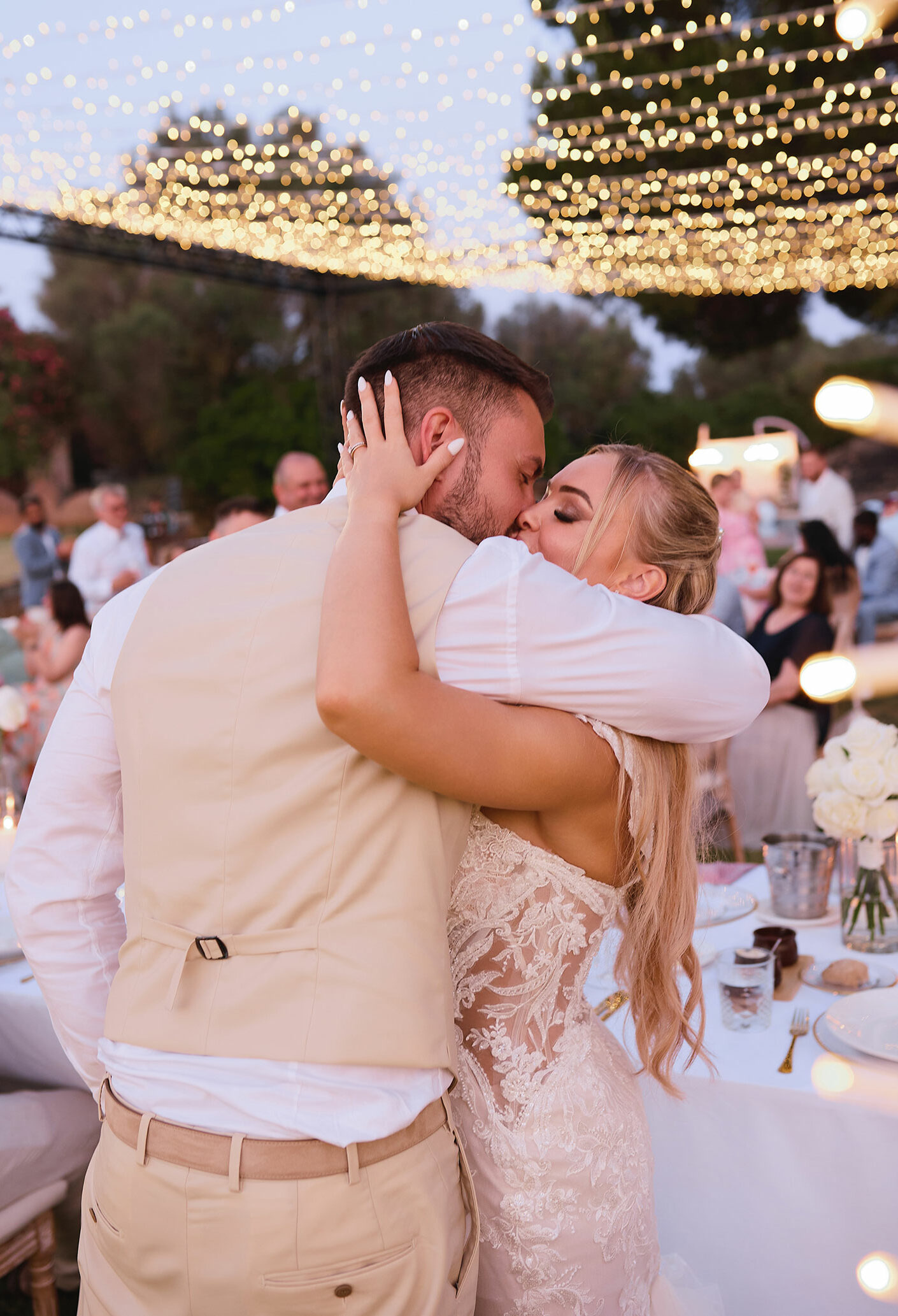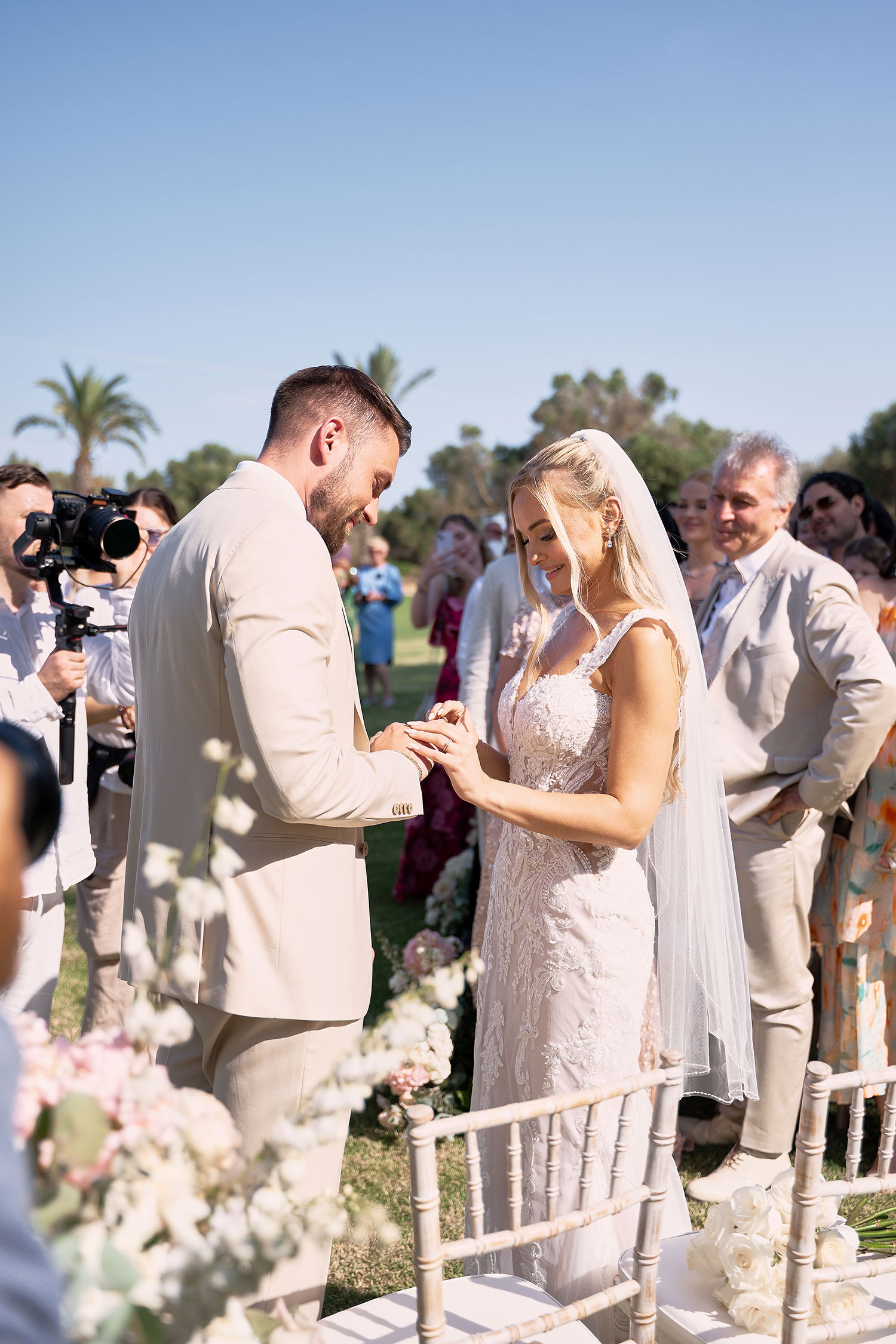 Boda de lujo en Santa Eulalia, donde una hermosa pareja intercambió votos bajo una piedra histórica y la luz dorada de las Islas Baleares: un día envuelto en elegancia, romance y encanto atemporal.