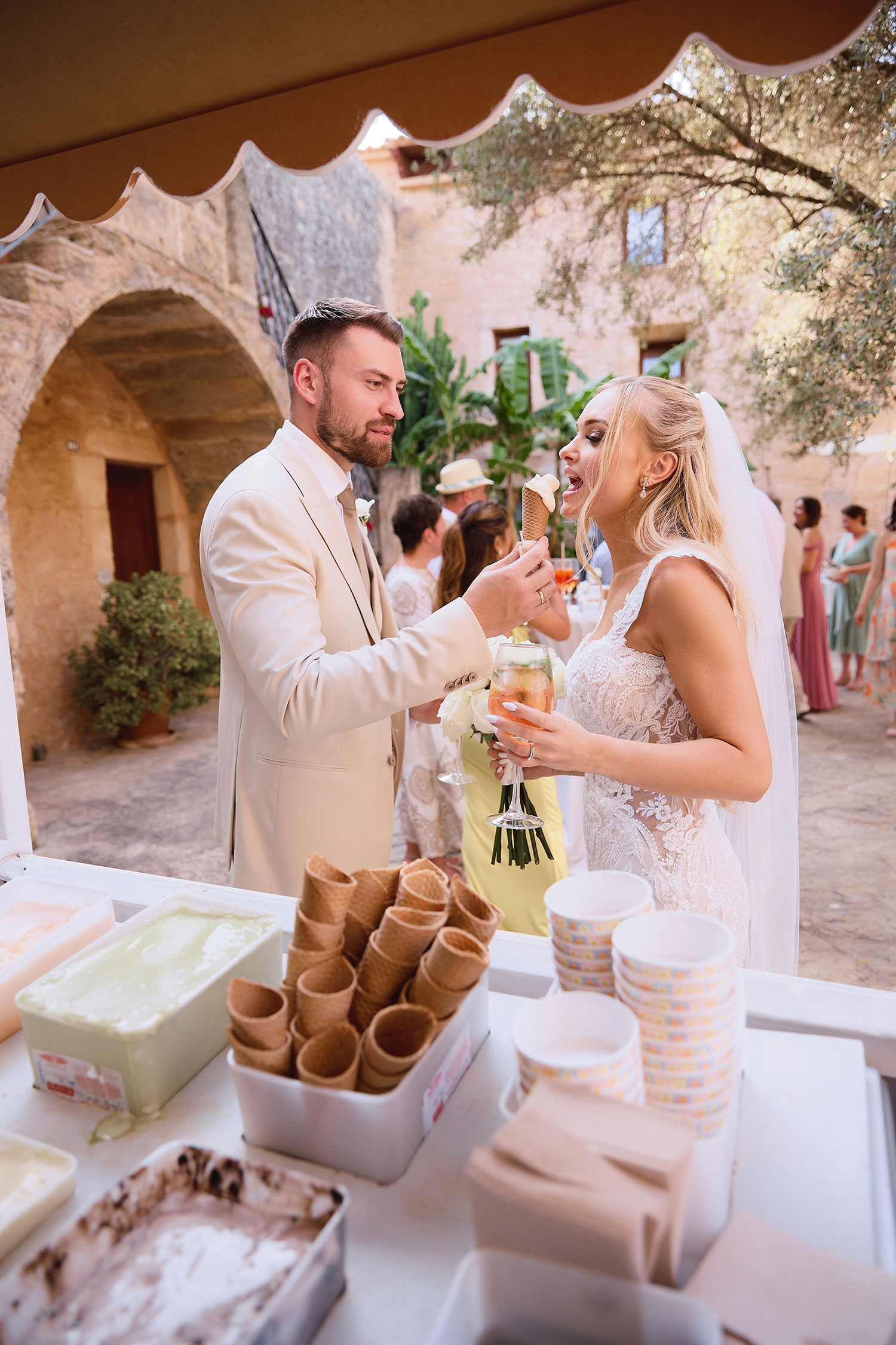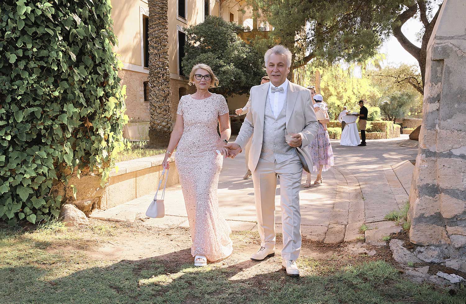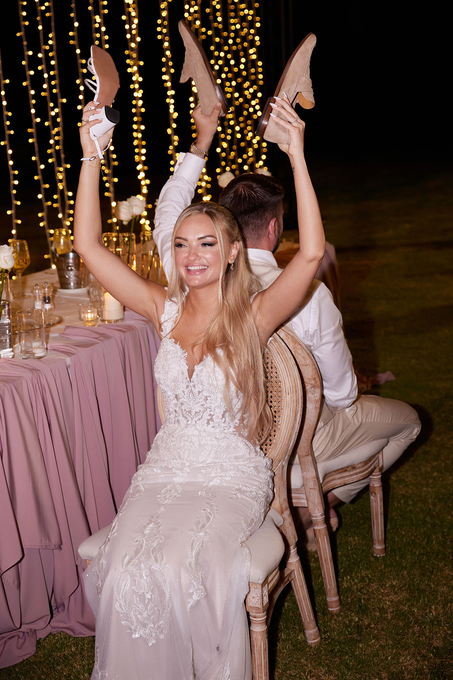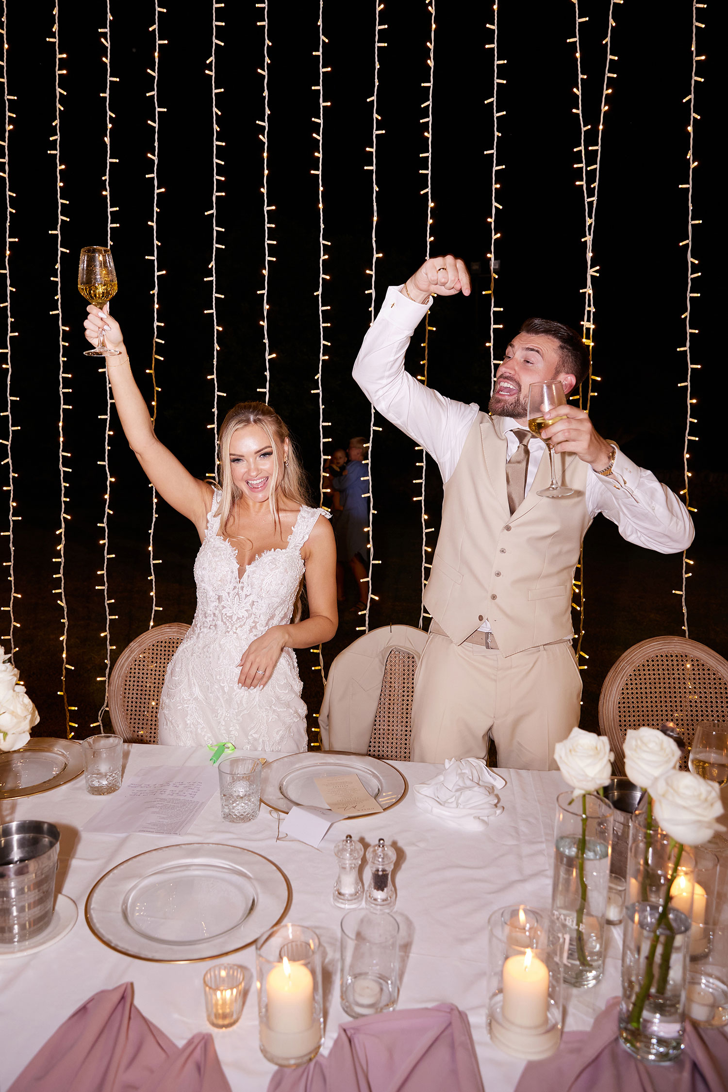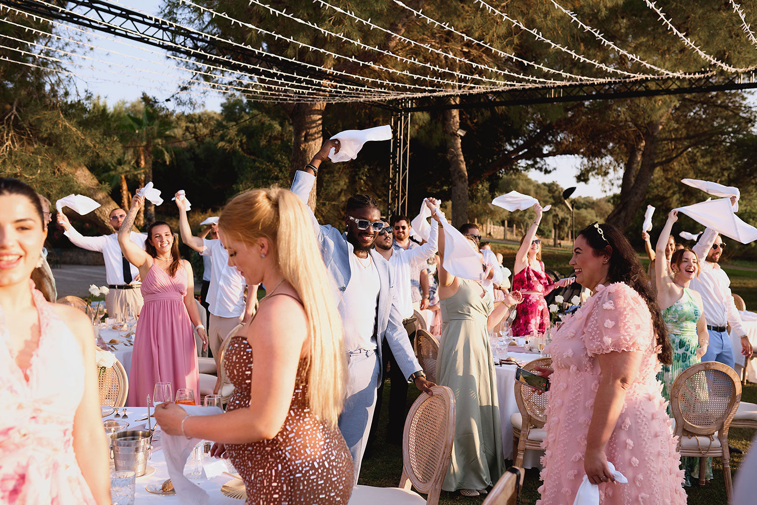 Boda de lujo en Santa Eulalia, donde una hermosa pareja intercambió votos bajo una piedra histórica y la luz dorada de las Islas Baleares: un día envuelto en elegancia, romance y encanto atemporal.