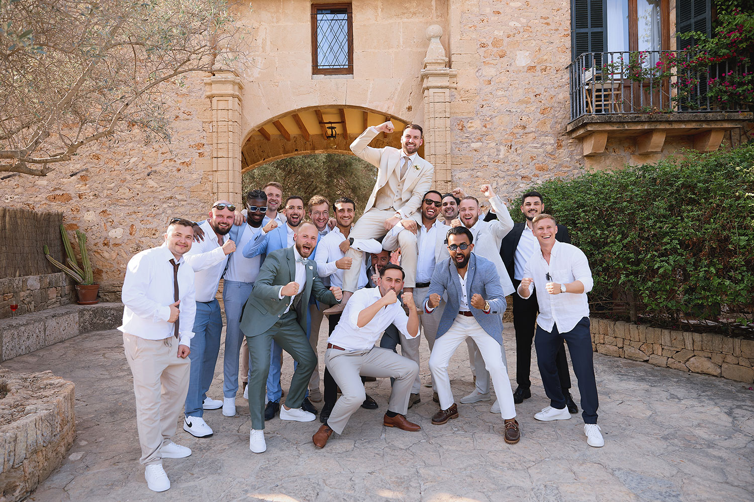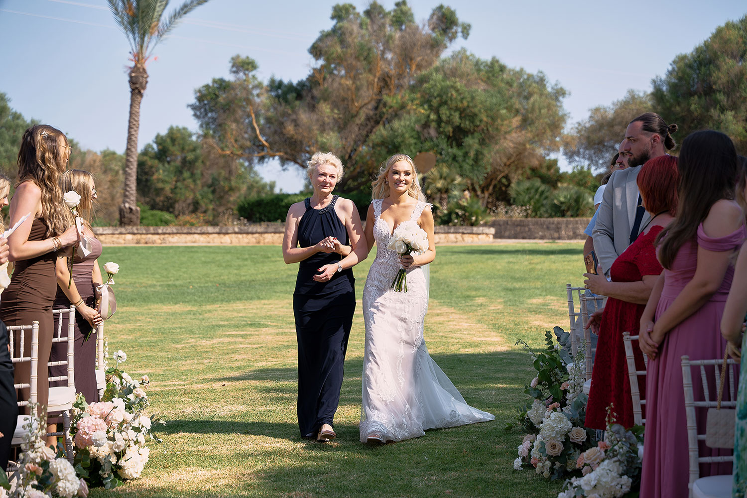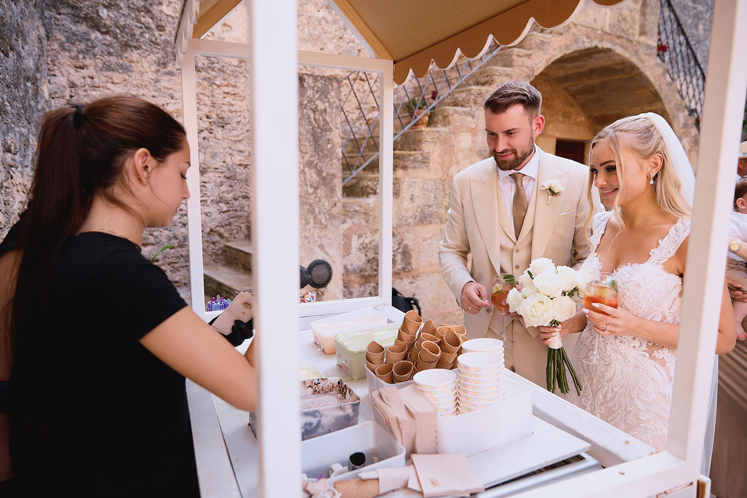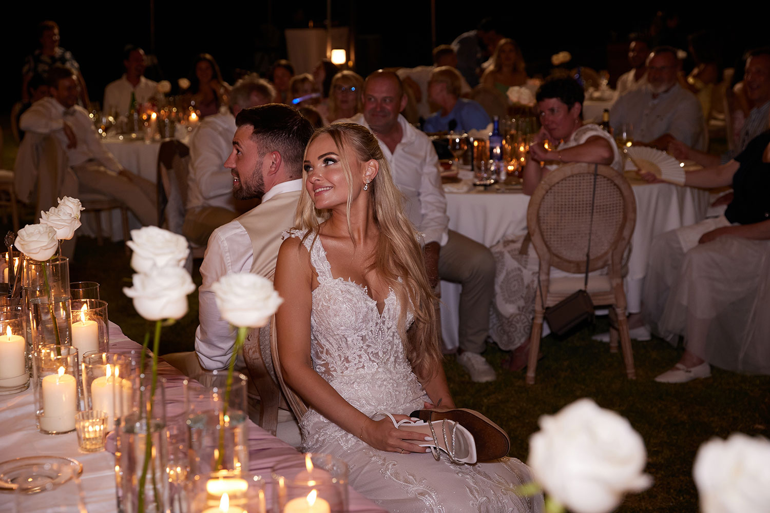 Boda de lujo en Santa Eulalia, donde una hermosa pareja intercambió votos bajo una piedra histórica y la luz dorada de las Islas Baleares: un día envuelto en elegancia, romance y encanto atemporal.