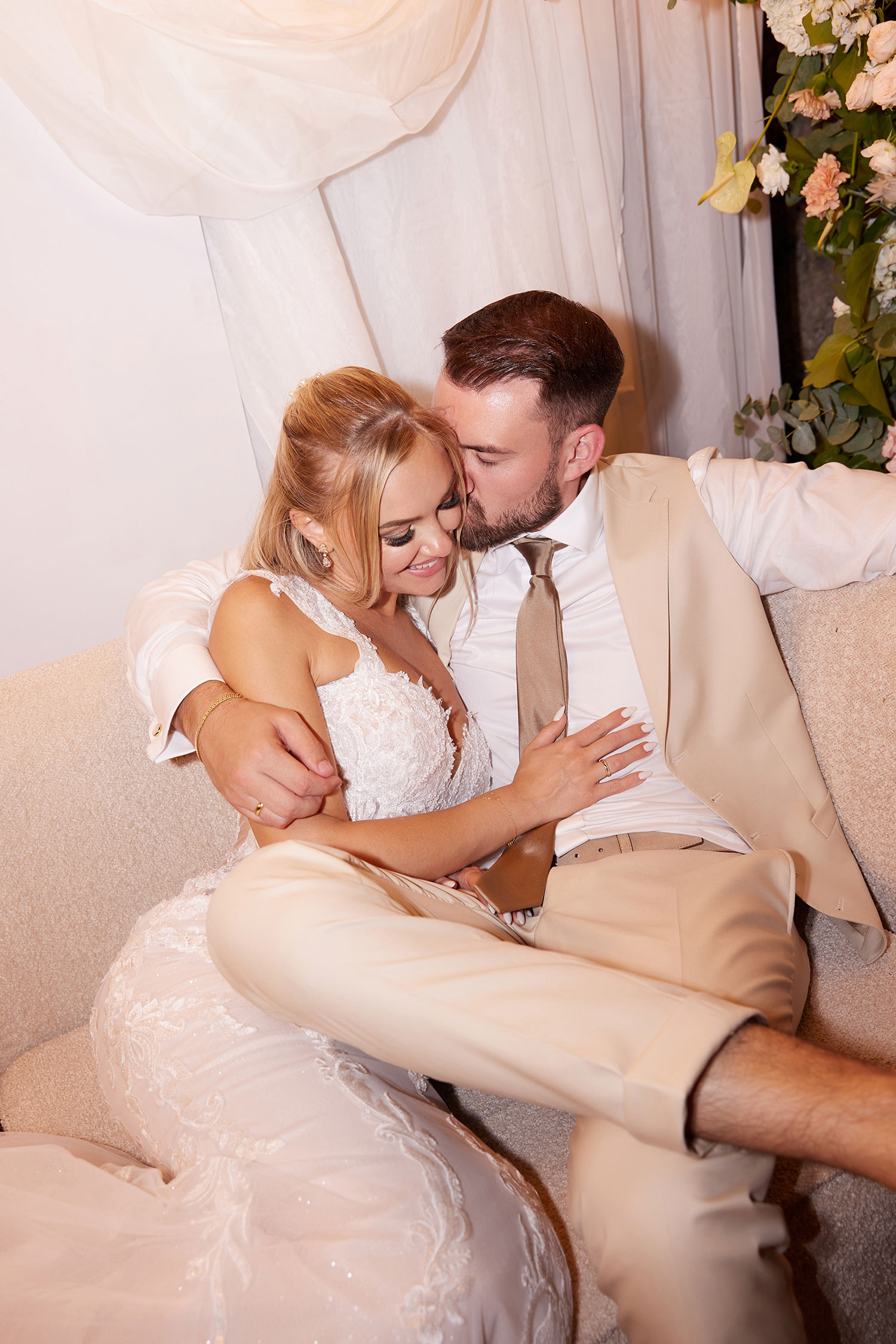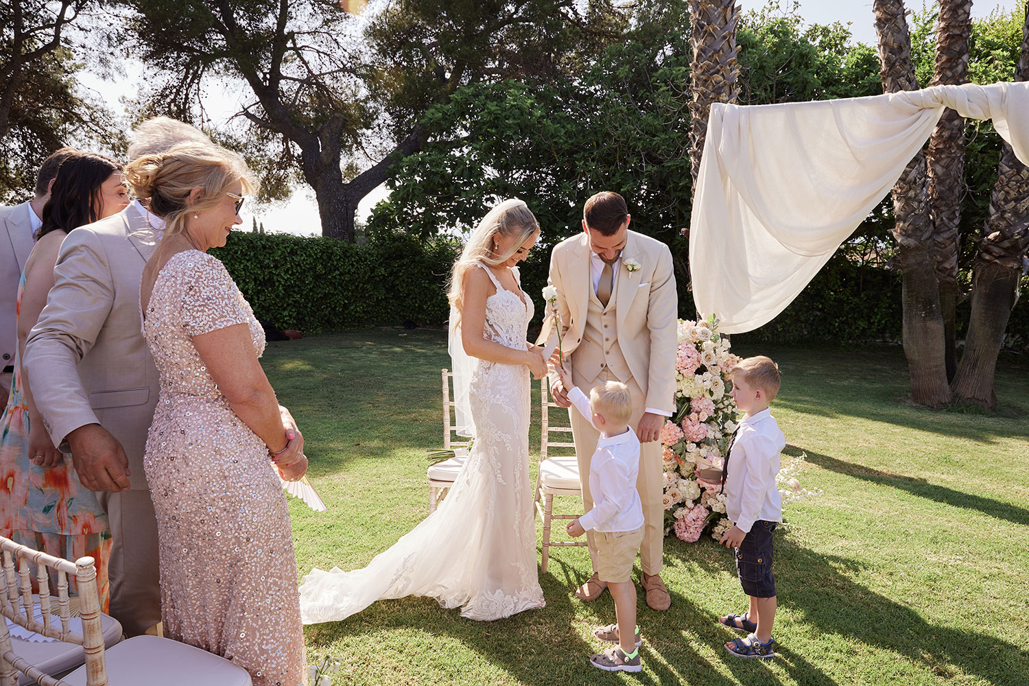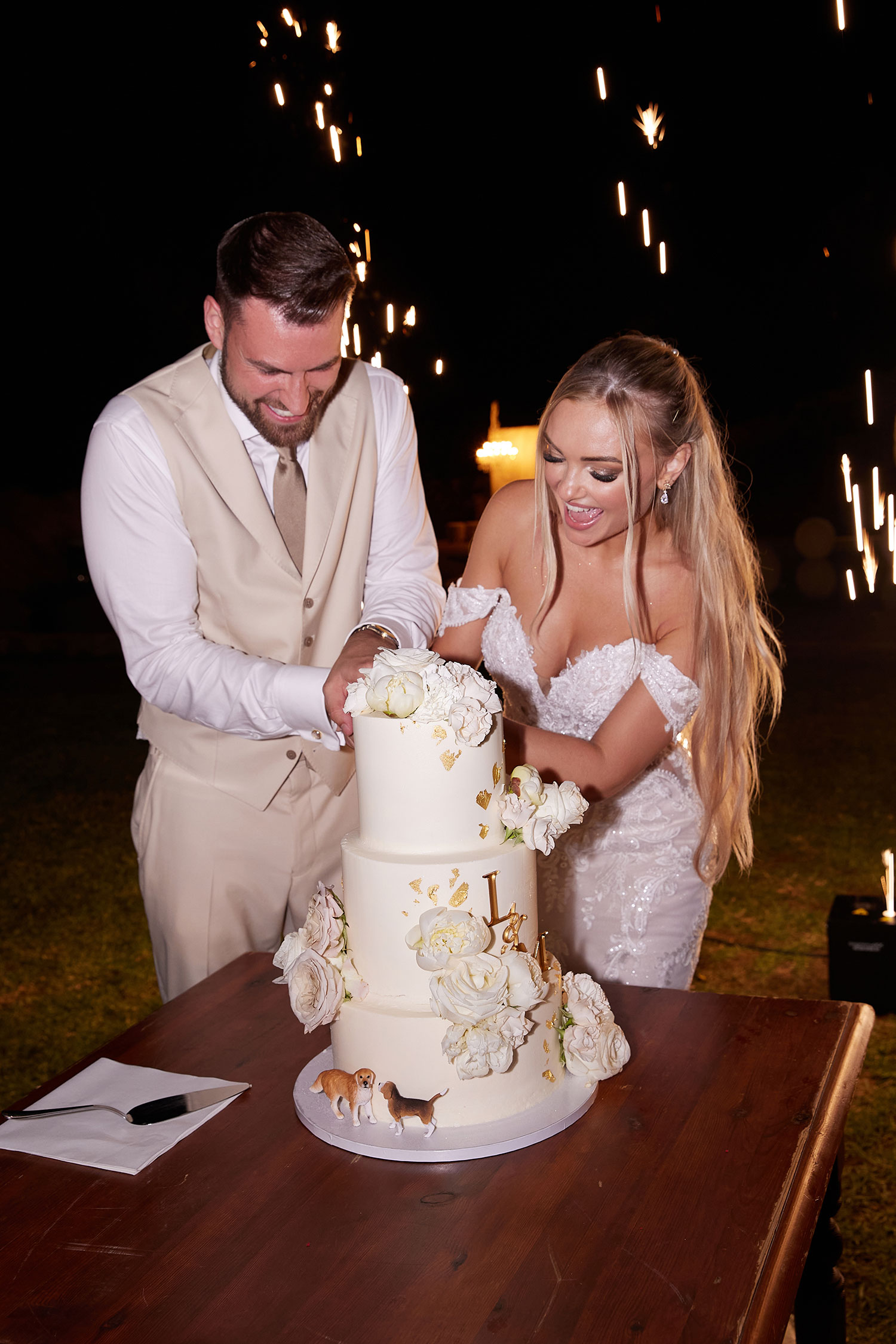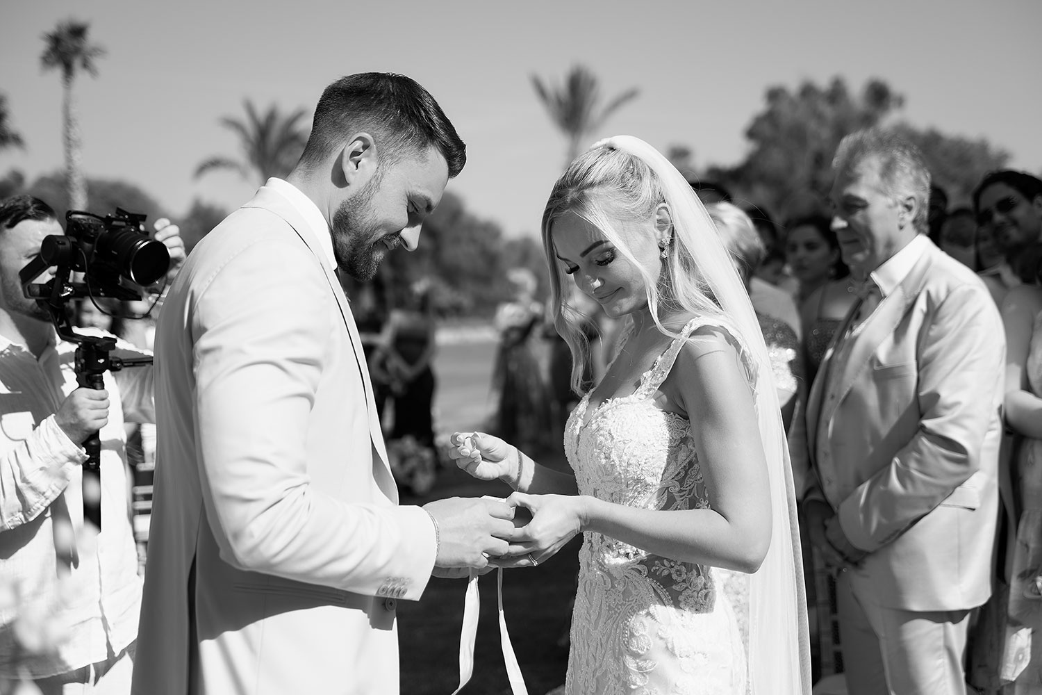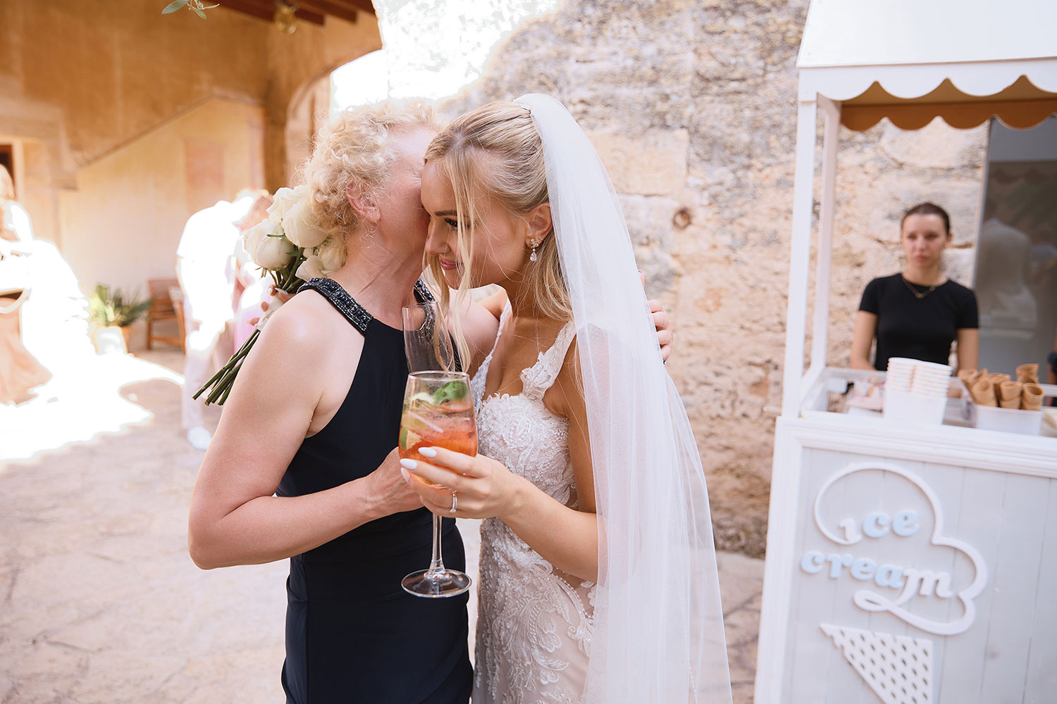 Boda de lujo en Santa Eulalia, donde una hermosa pareja intercambió votos bajo una piedra histórica y la luz dorada de las Islas Baleares: un día envuelto en elegancia, romance y encanto atemporal.