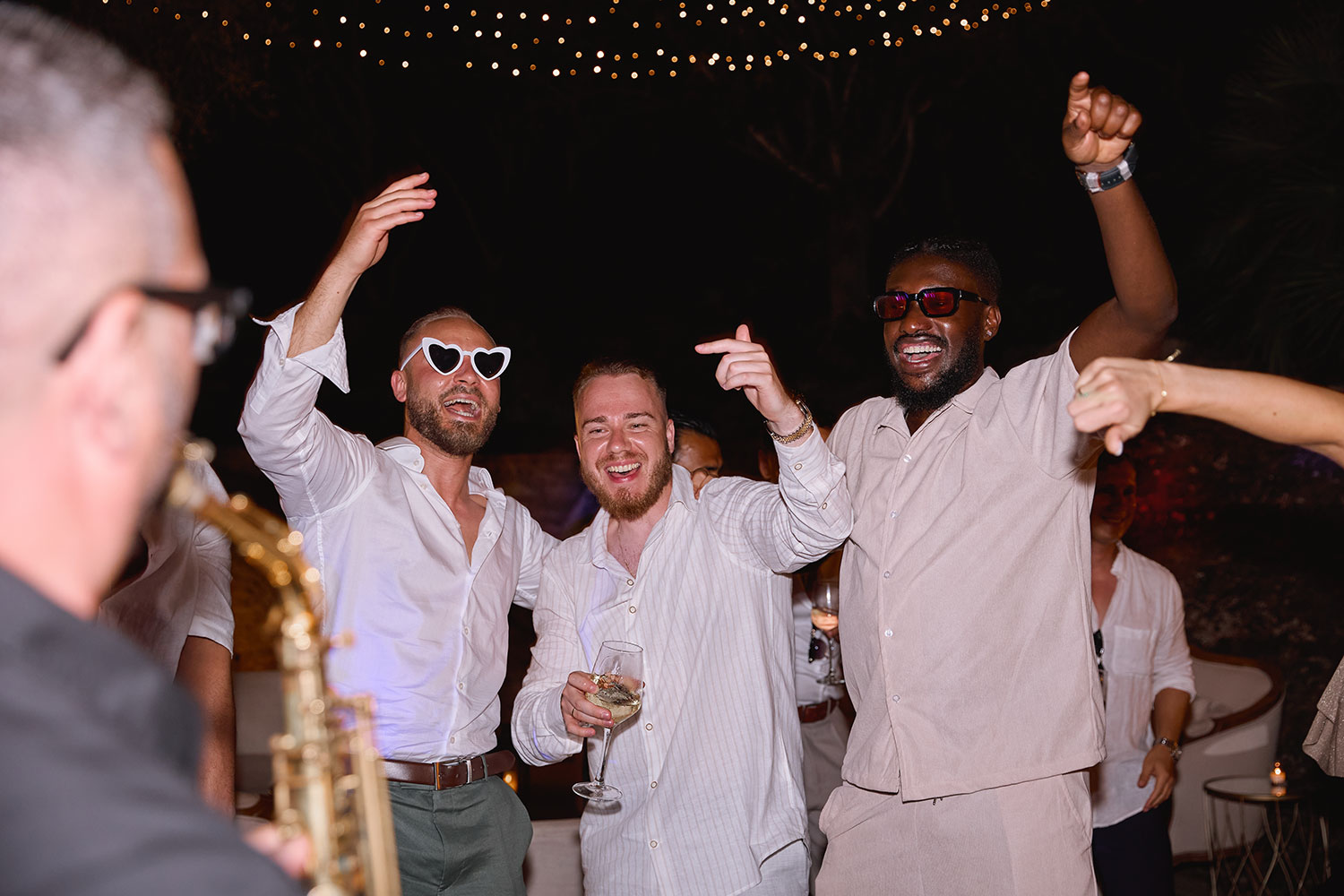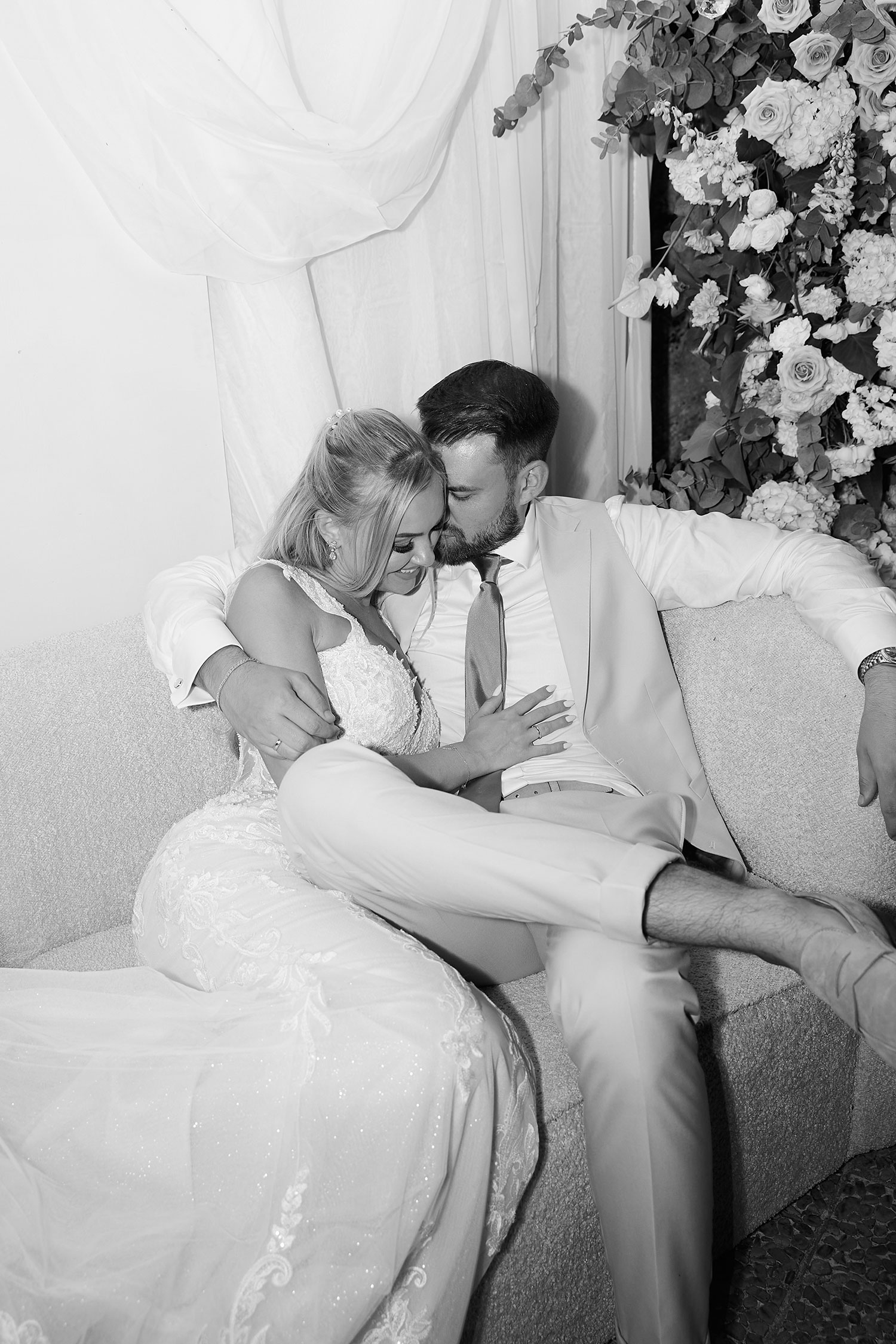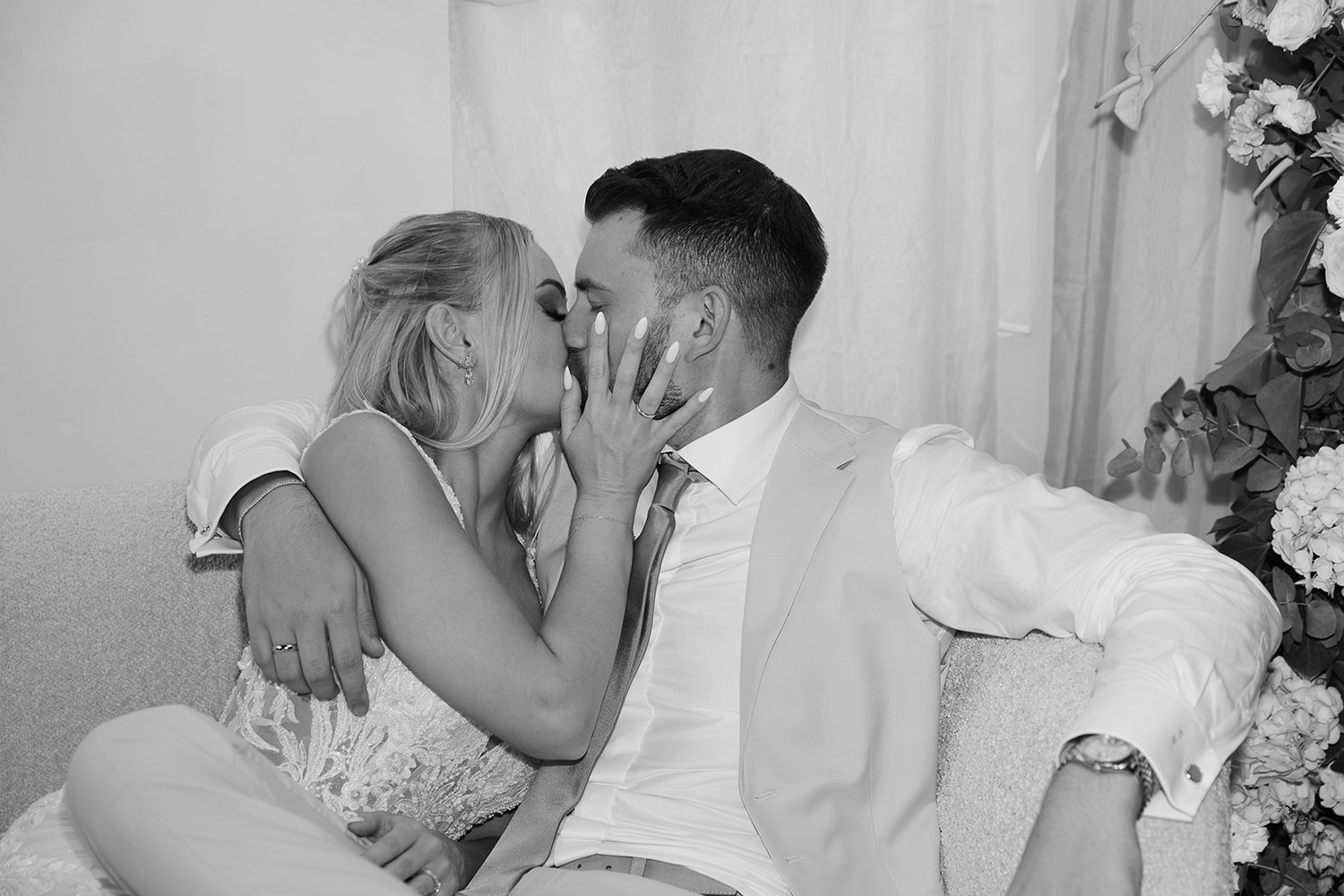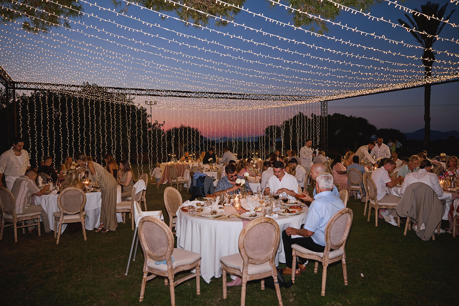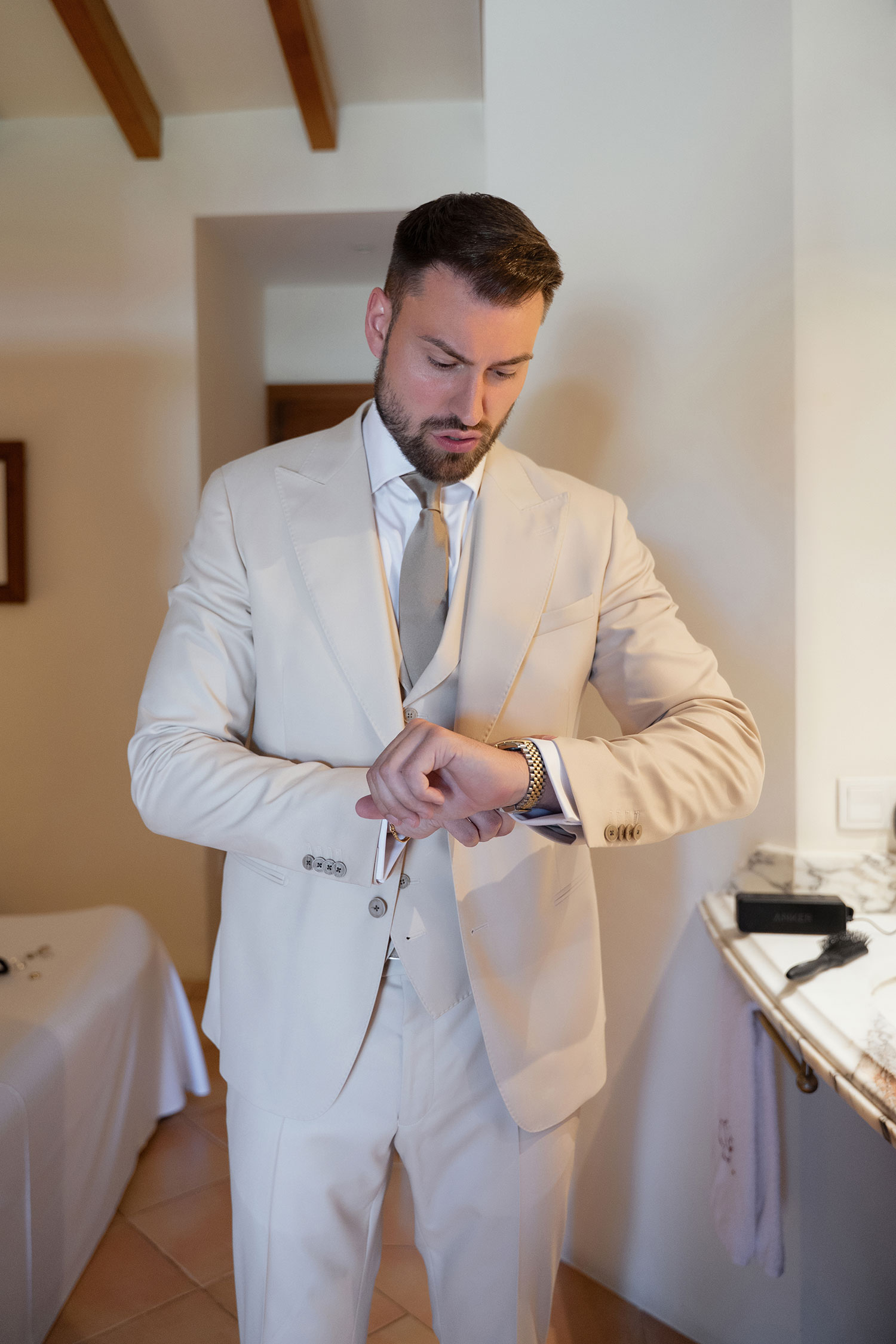 Boda de lujo en Santa Eulalia, donde una hermosa pareja intercambió votos bajo una piedra histórica y la luz dorada de las Islas Baleares: un día envuelto en elegancia, romance y encanto atemporal.