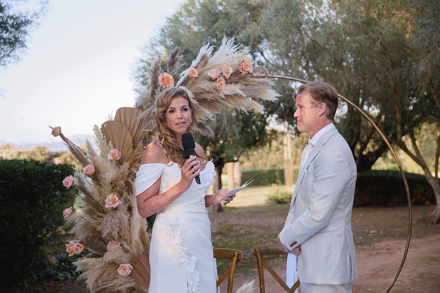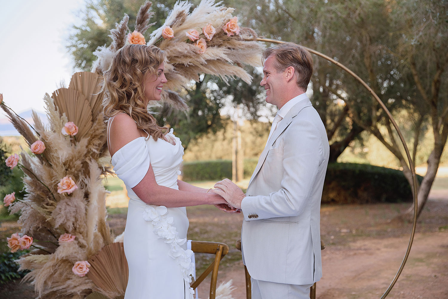 Una boda increíble en Santa Eulalia, envuelta en la dorada luz balear, donde piedras antiguas, música suave y votos sinceros convirtieron cada momento en algo eternamente romántico.