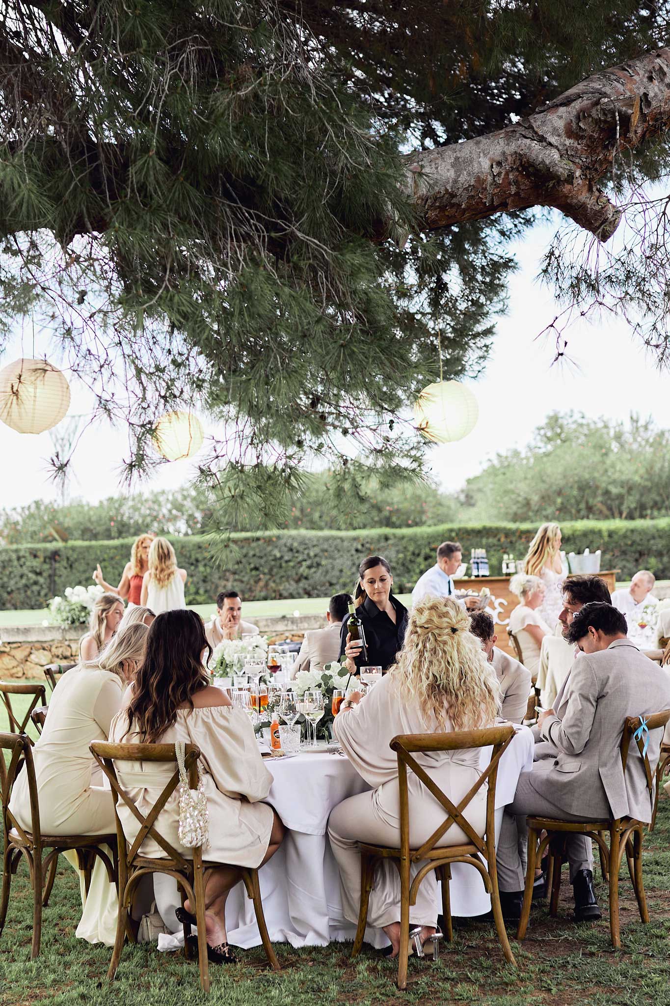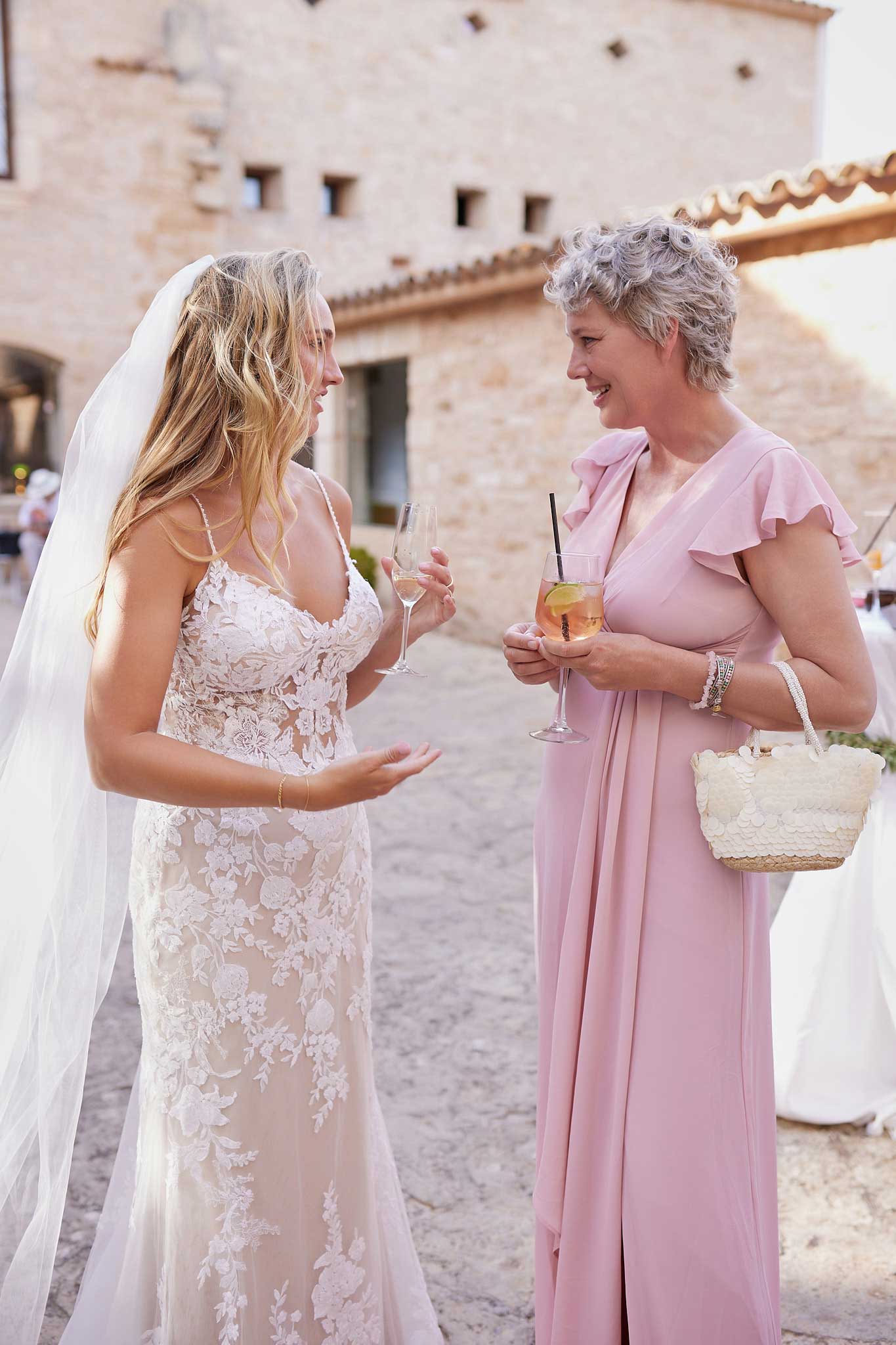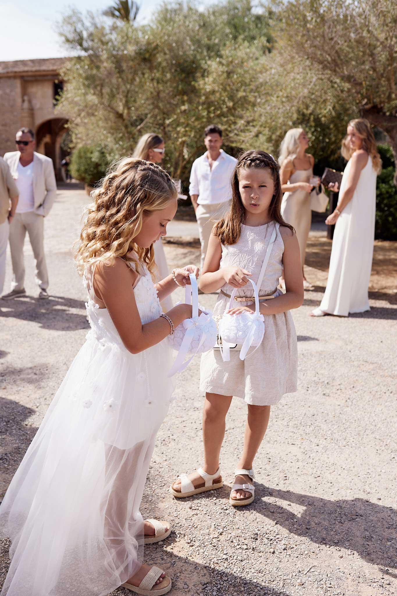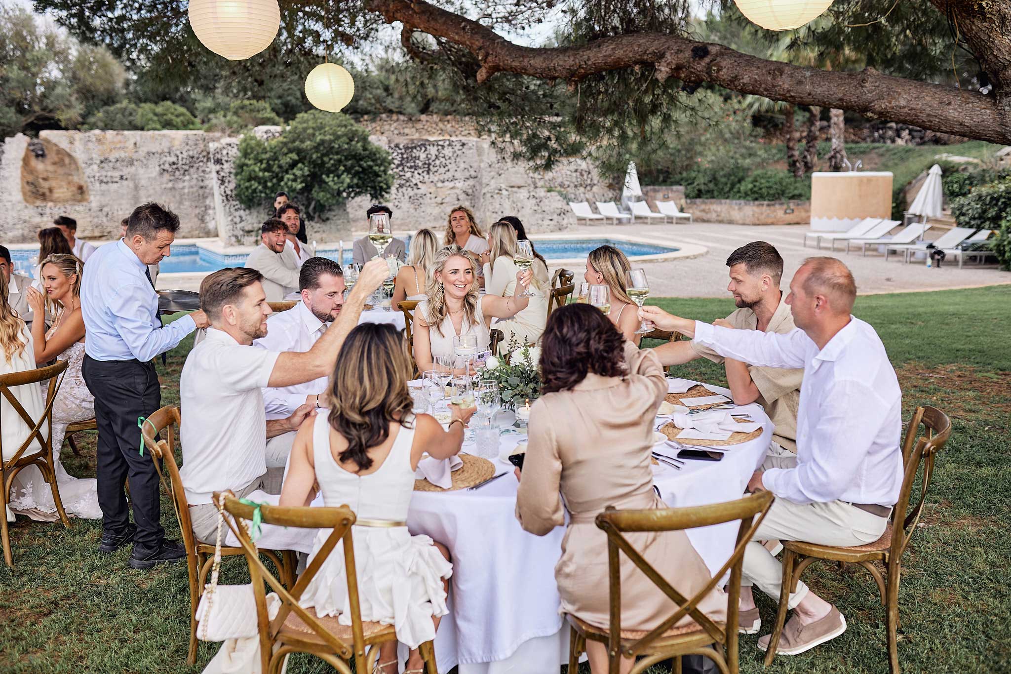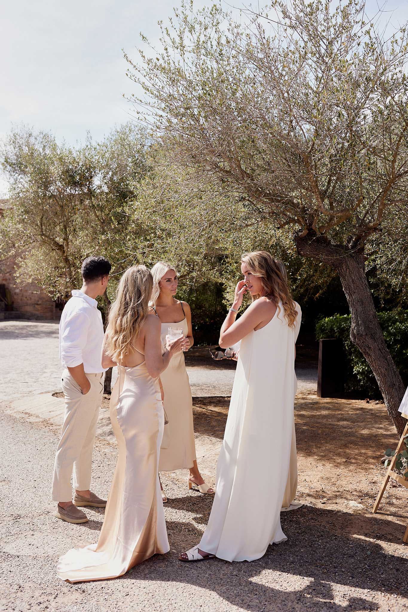 La hermosa boda de Sabrina y Rico en Casal Santa Eulalia, Mallorca, rodeada de campos dorados, antiguos muros de piedra y el cálido resplandor de un atardecer mediterráneo.