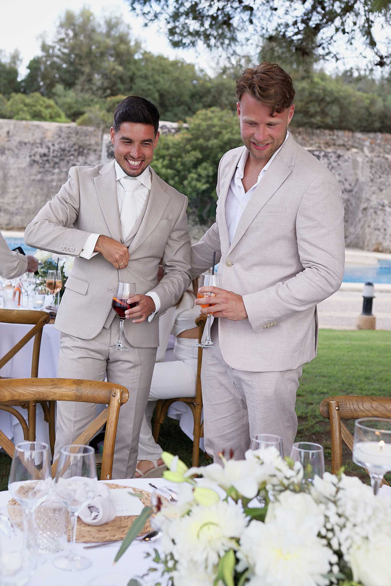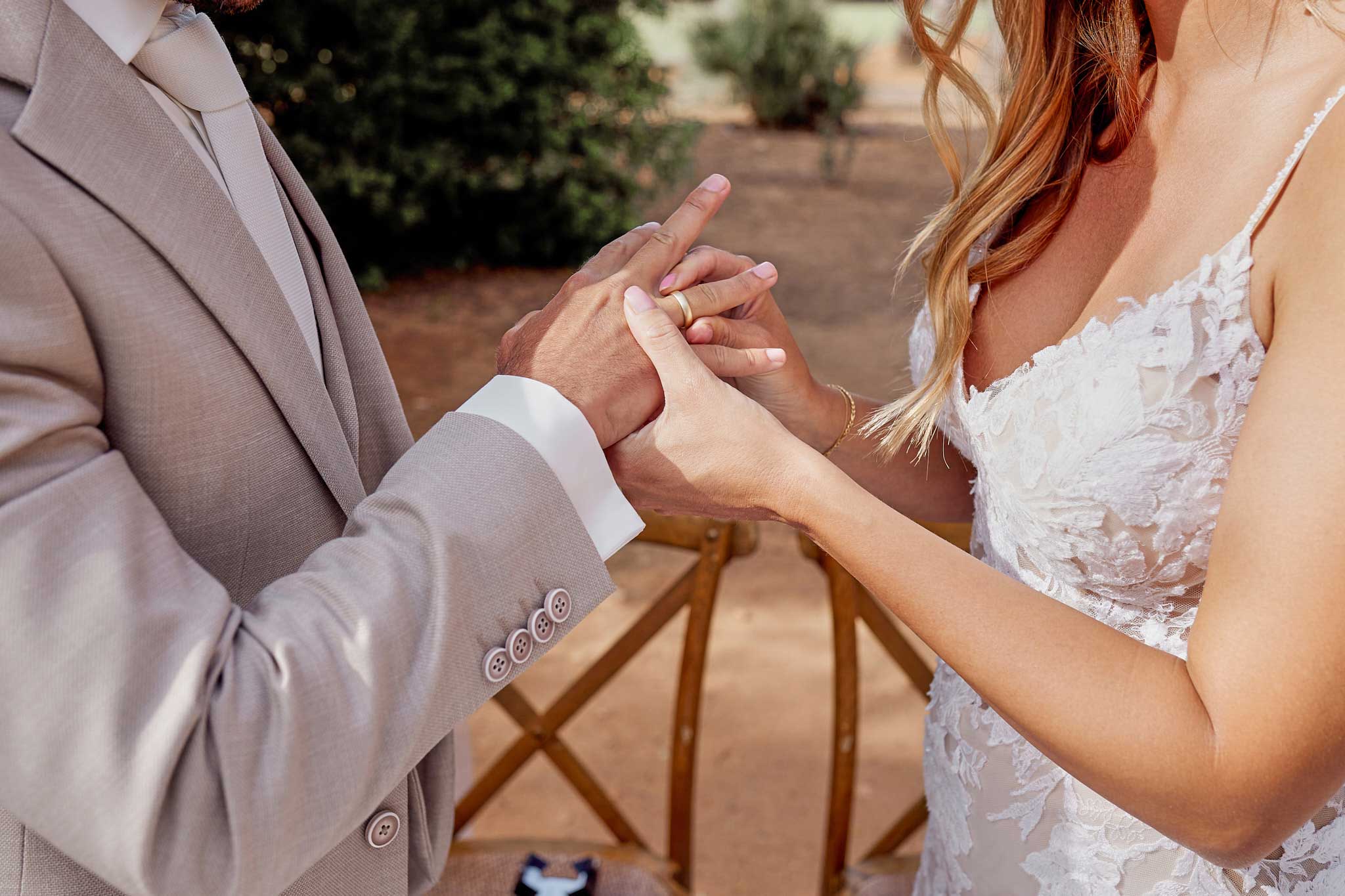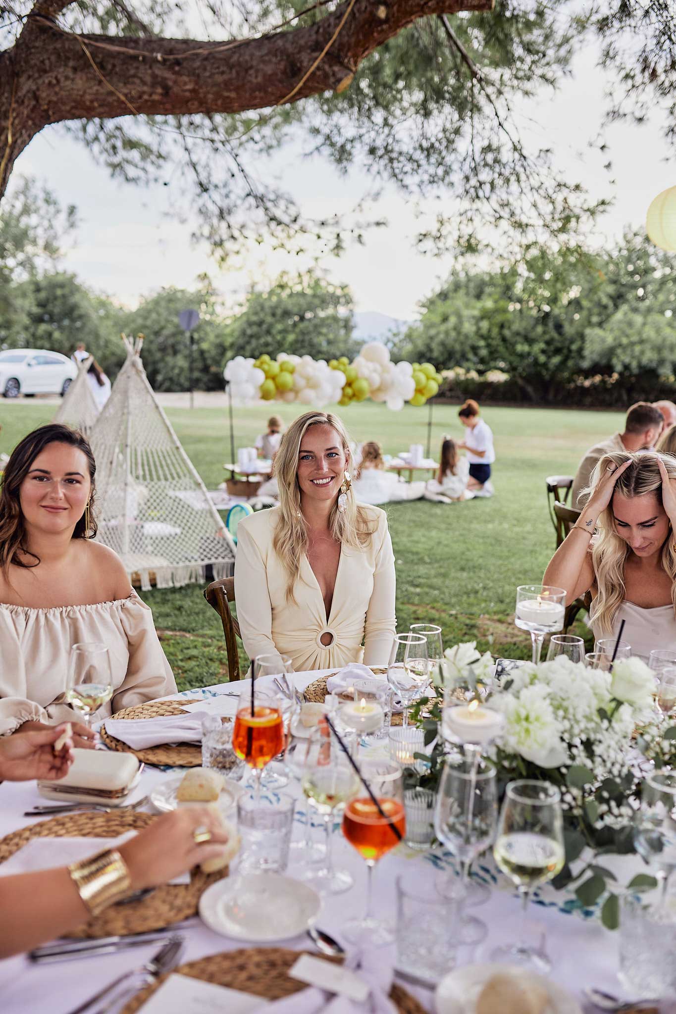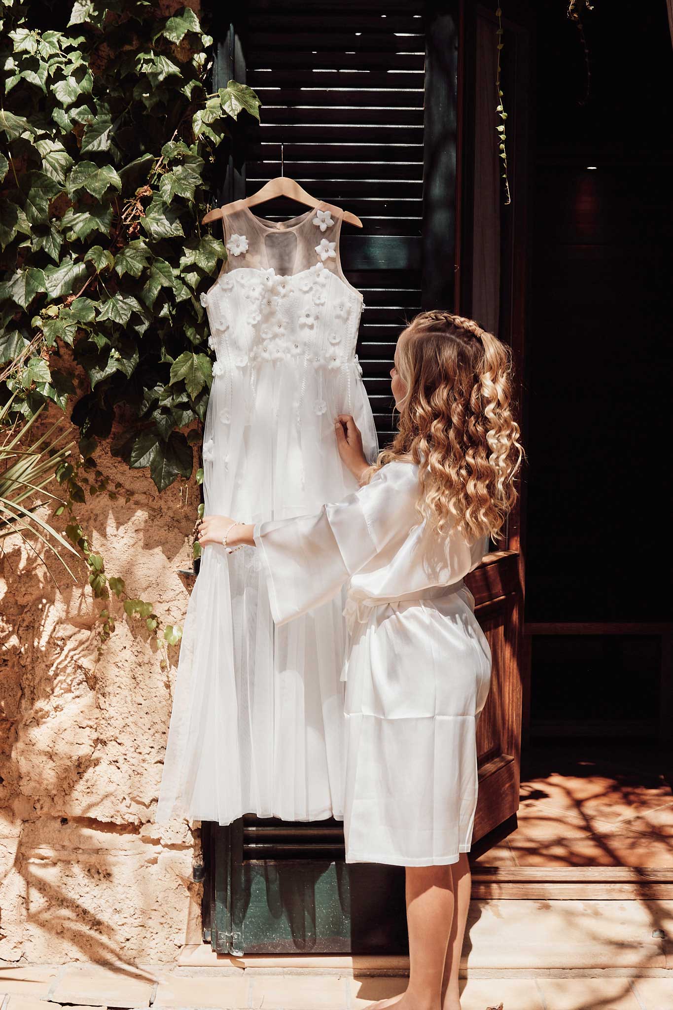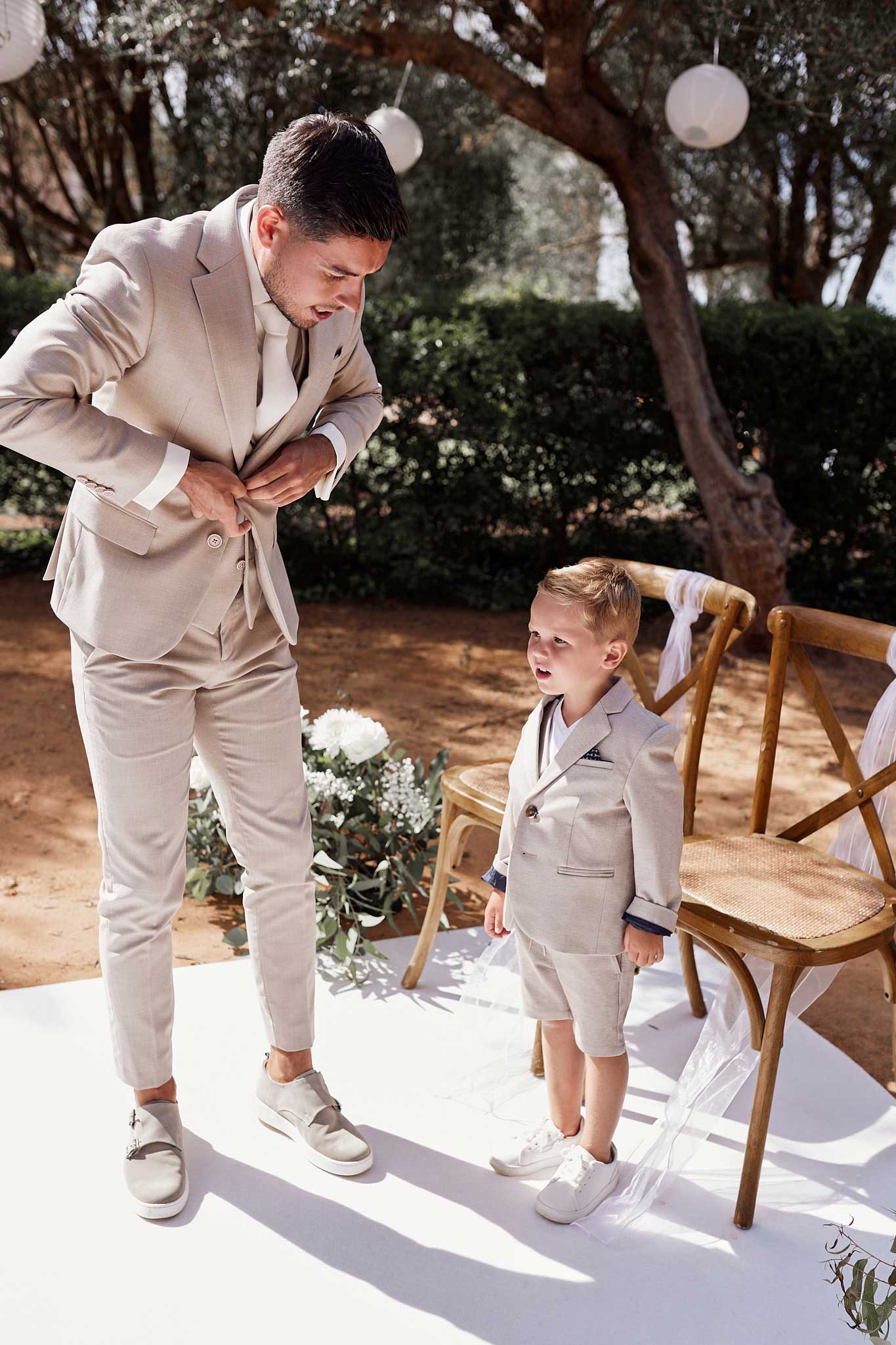 La hermosa boda de Sabrina y Rico en Casal Santa Eulalia, Mallorca, rodeada de campos dorados, antiguos muros de piedra y el cálido resplandor de un atardecer mediterráneo.