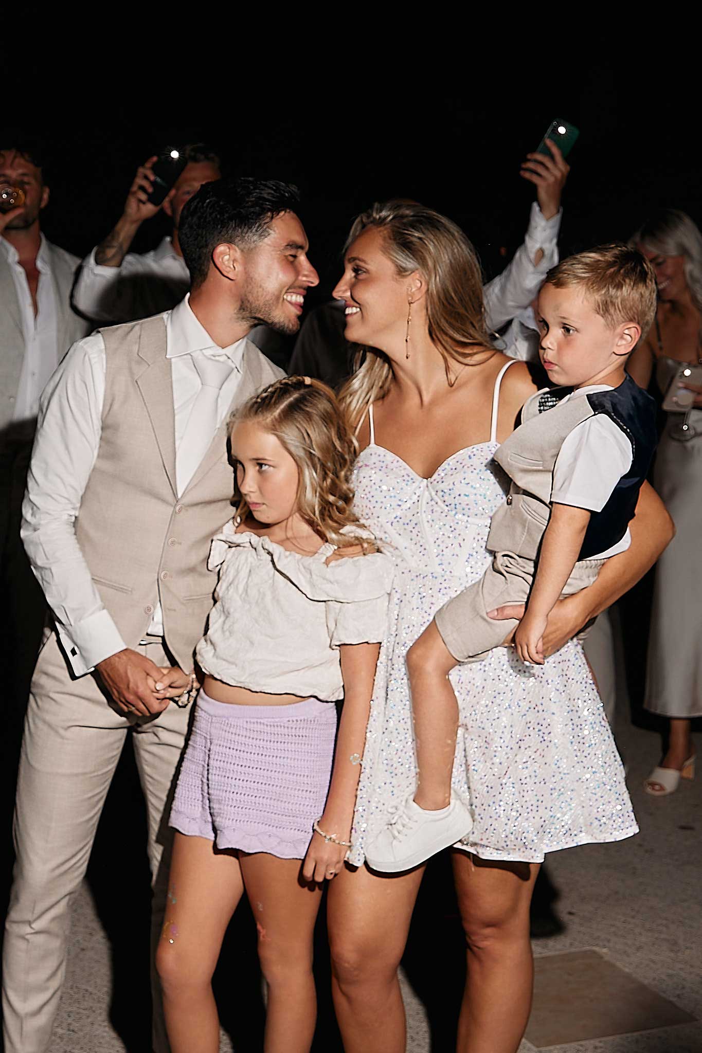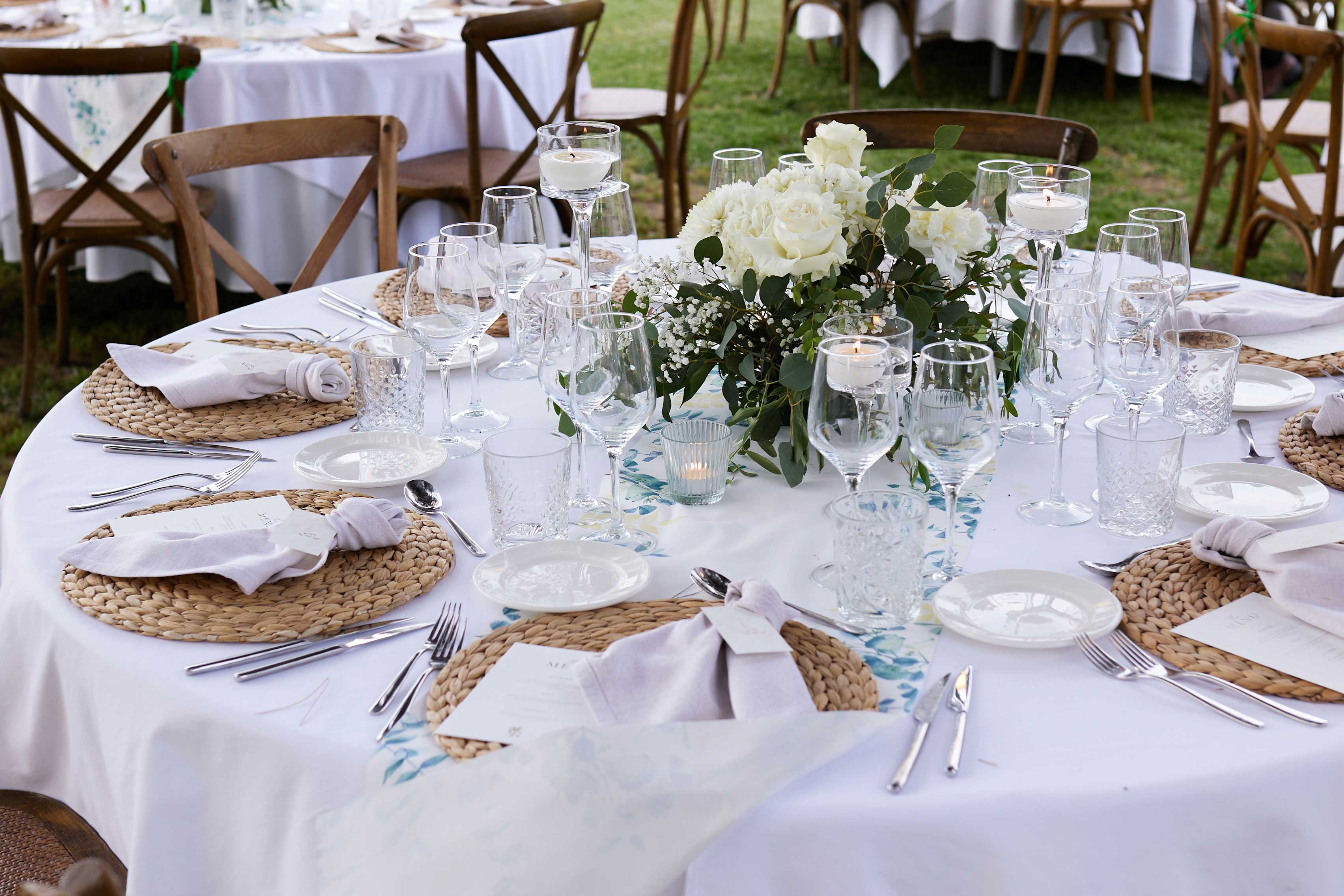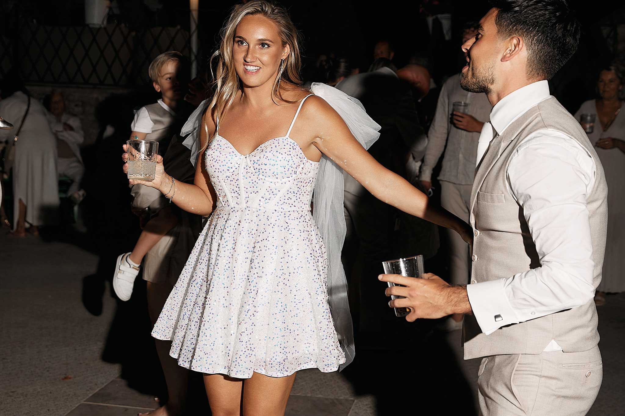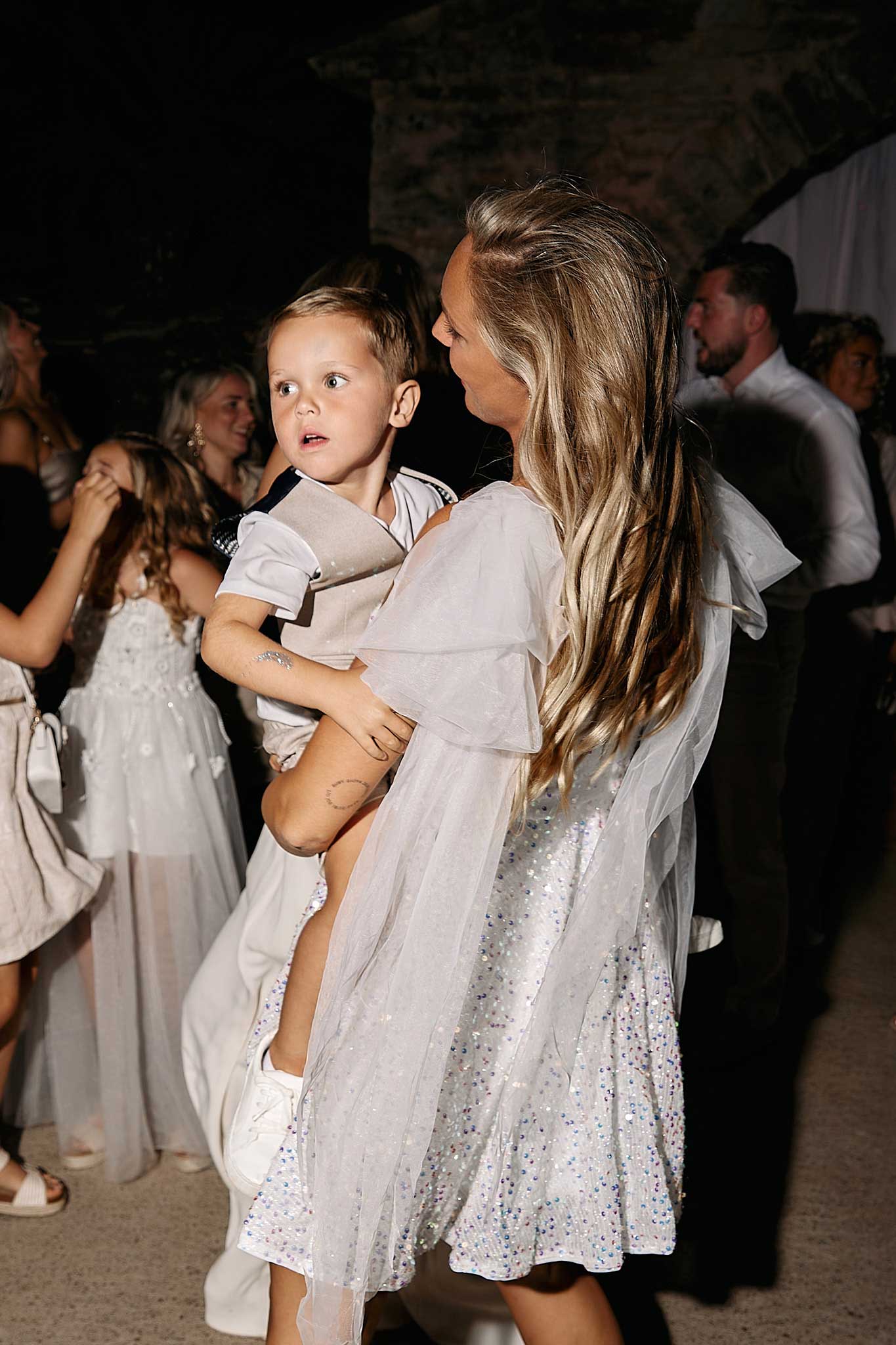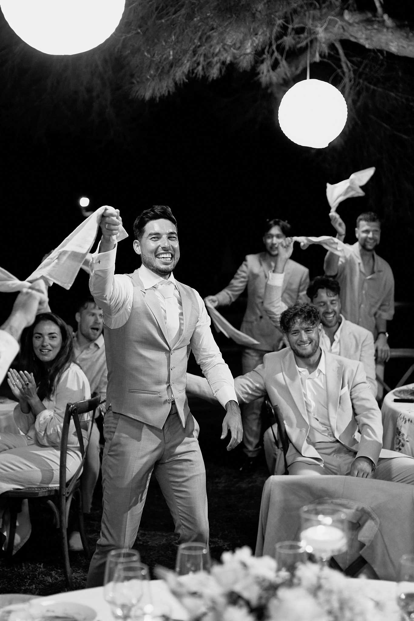 La hermosa boda de Sabrina y Rico en Casal Santa Eulalia, Mallorca, rodeada de campos dorados, antiguos muros de piedra y el cálido resplandor de un atardecer mediterráneo.
