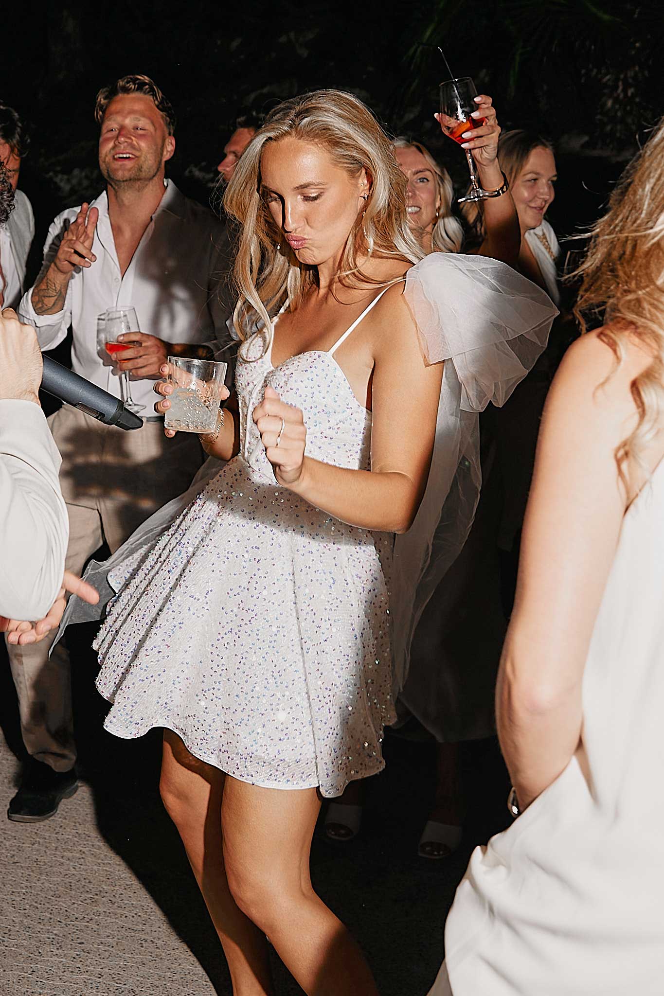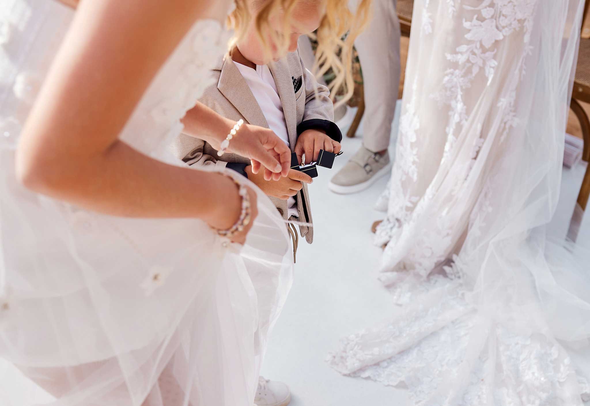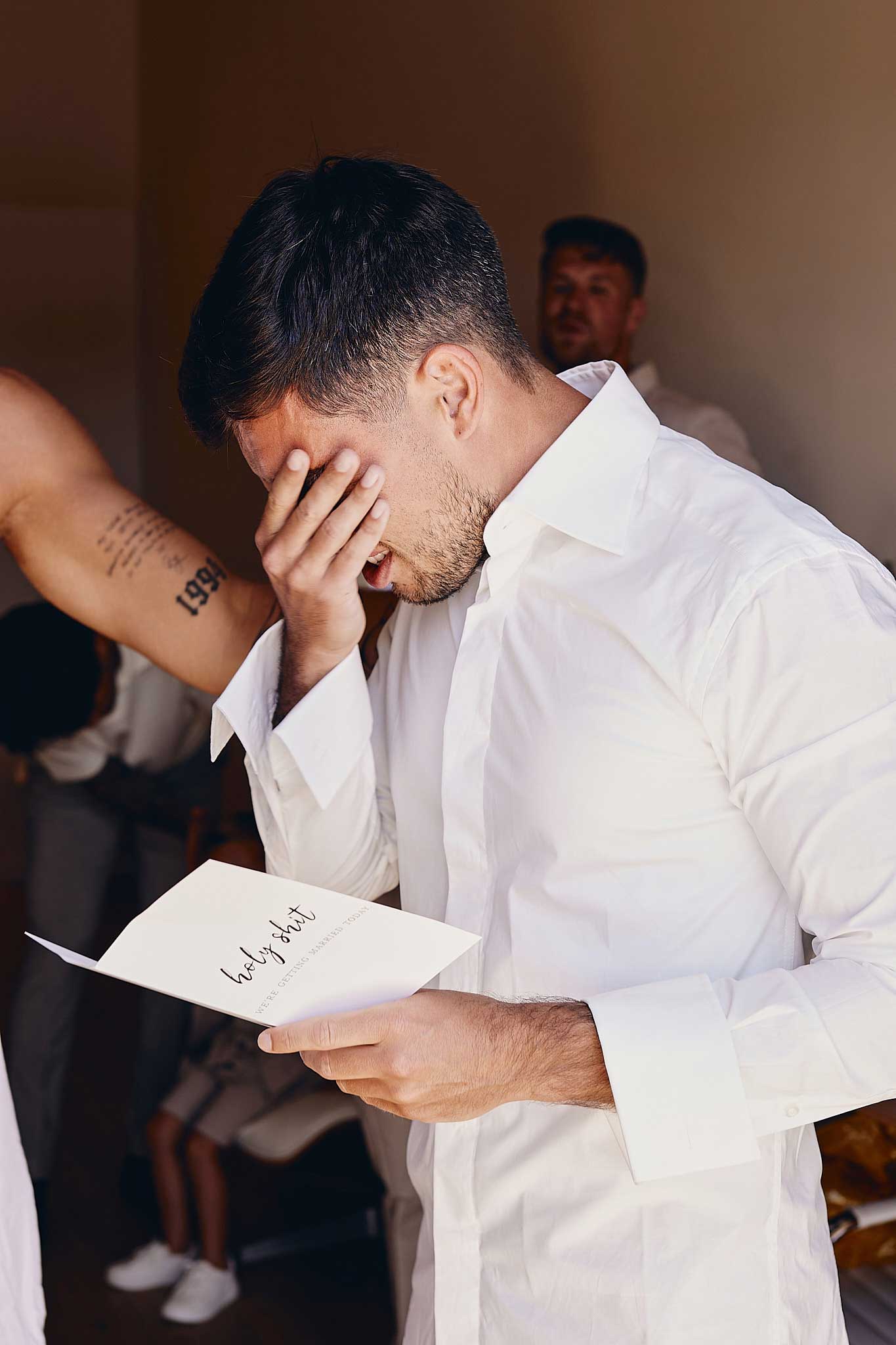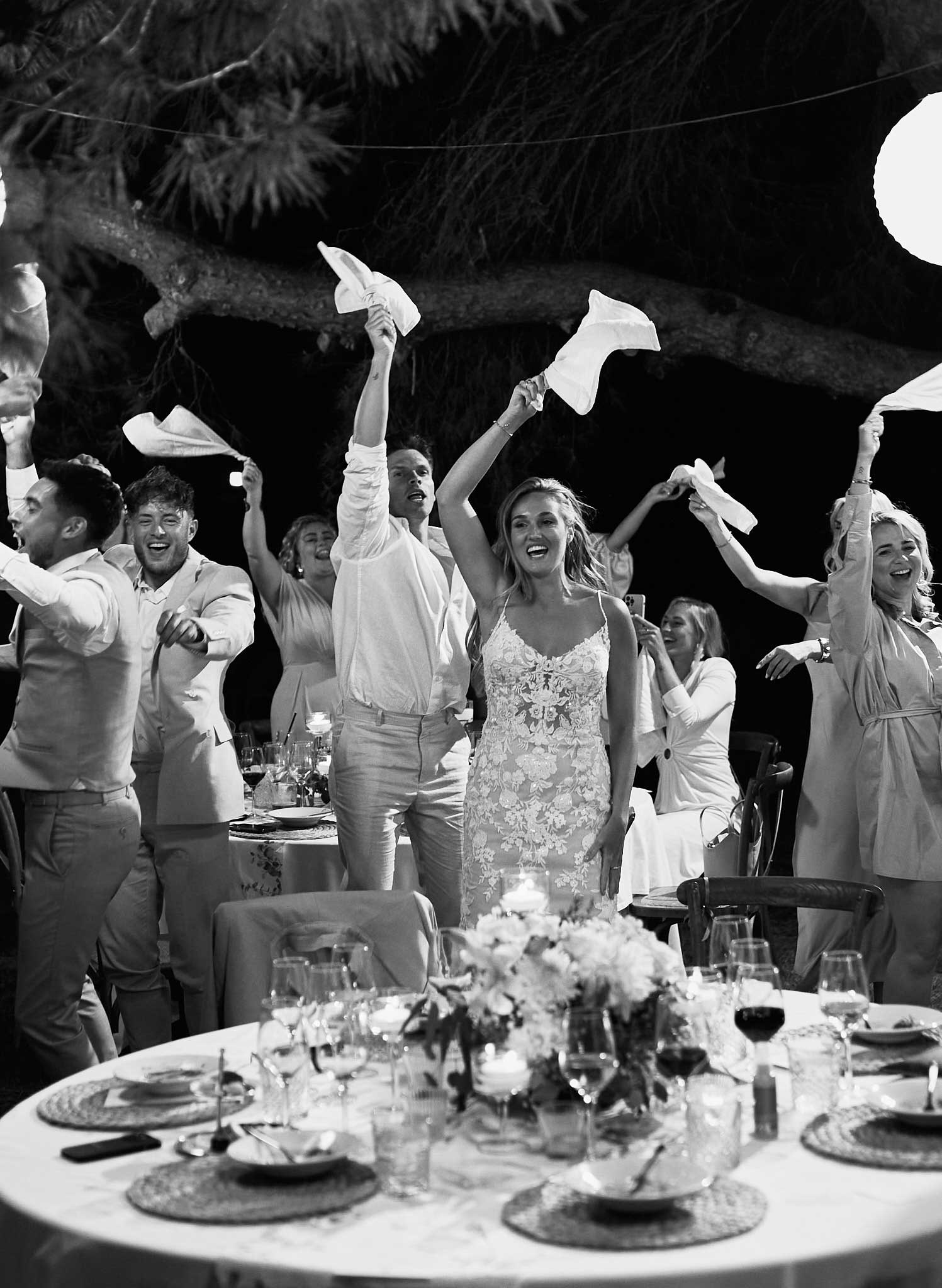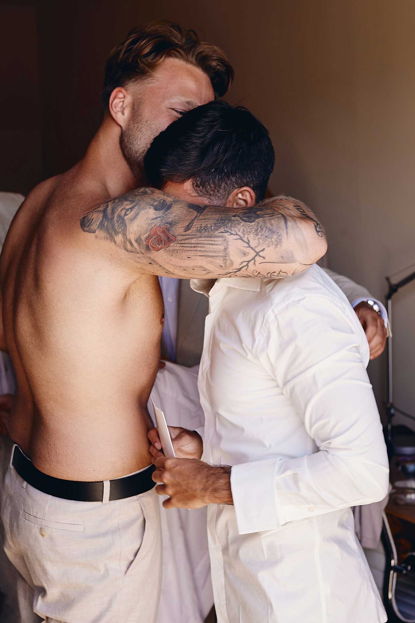 La hermosa boda de Sabrina y Rico en Casal Santa Eulalia, Mallorca, rodeada de campos dorados, antiguos muros de piedra y el cálido resplandor de un atardecer mediterráneo.